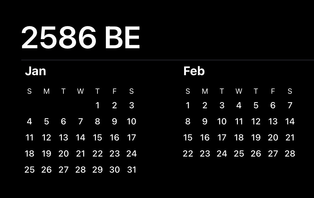 เพราะฉะนั้น ปี ค.ศ. 2026 (พ.ศ. 2569) เป็น ปีที่มีเดือน ก.พ. 28 วัน และ 1 ก.พ. เป็น วันอาทิตย์ ตามเงื่อนไข