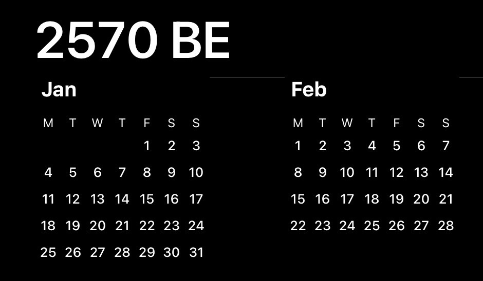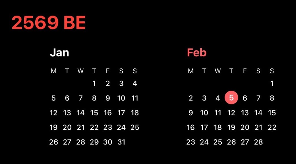 ลงทดสอบ ถ้าให้ปี พ.ศ. 2569 (ค.ศ. 2026) เป็นปีที่มี ก.พ. เต็ม wk