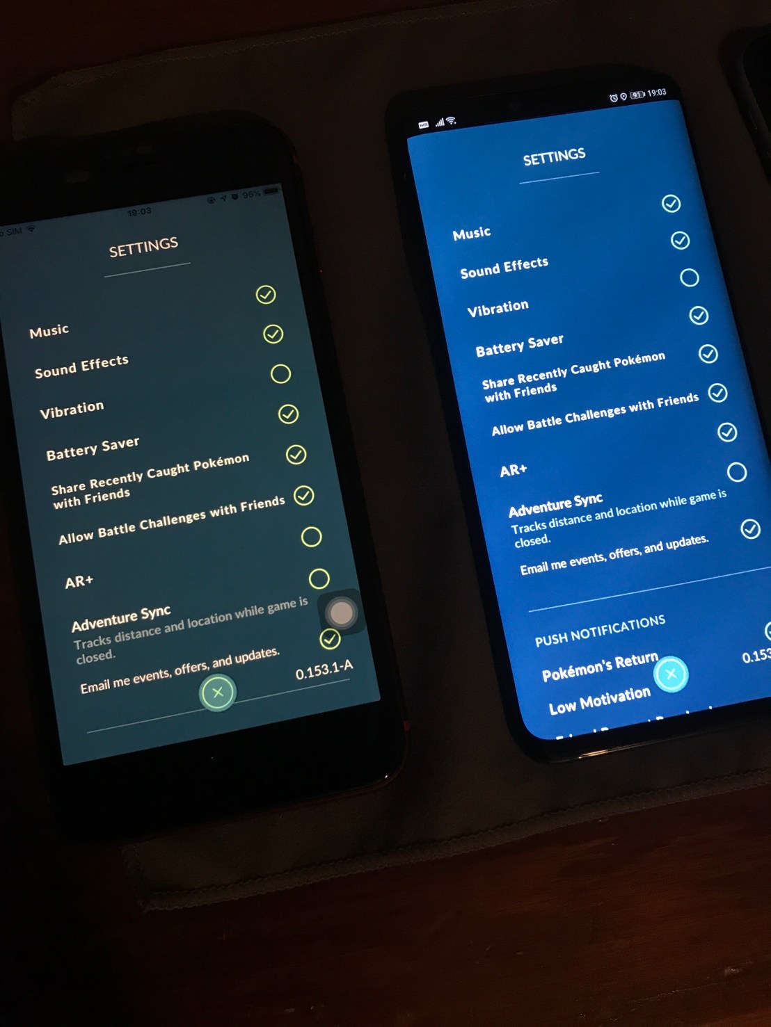 จากรูป โดยภาพรวมของเกมไม่แตกต่างกันครับ Niantic พยายามออกแบบ User interface และตำแหน่งการวาง icon แบบเดียวกันเลย