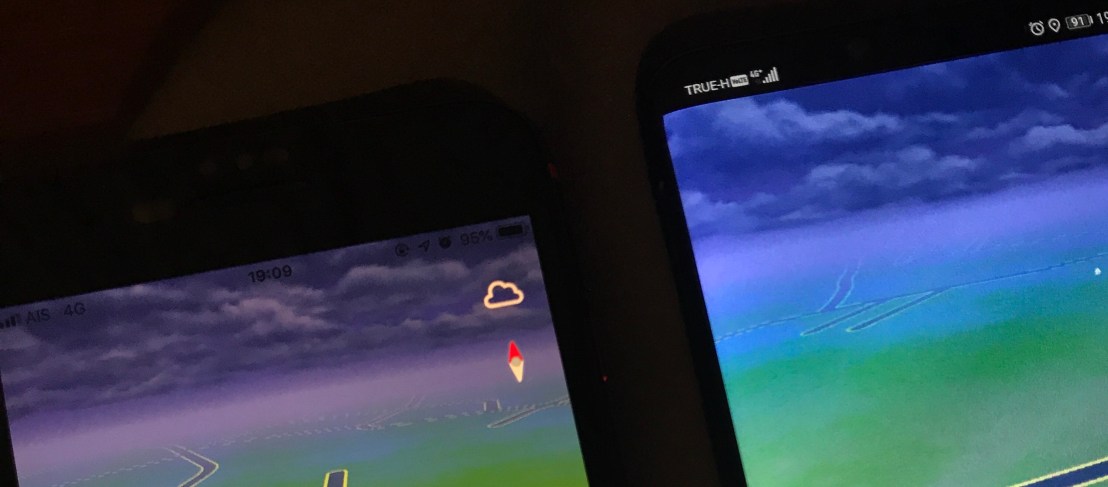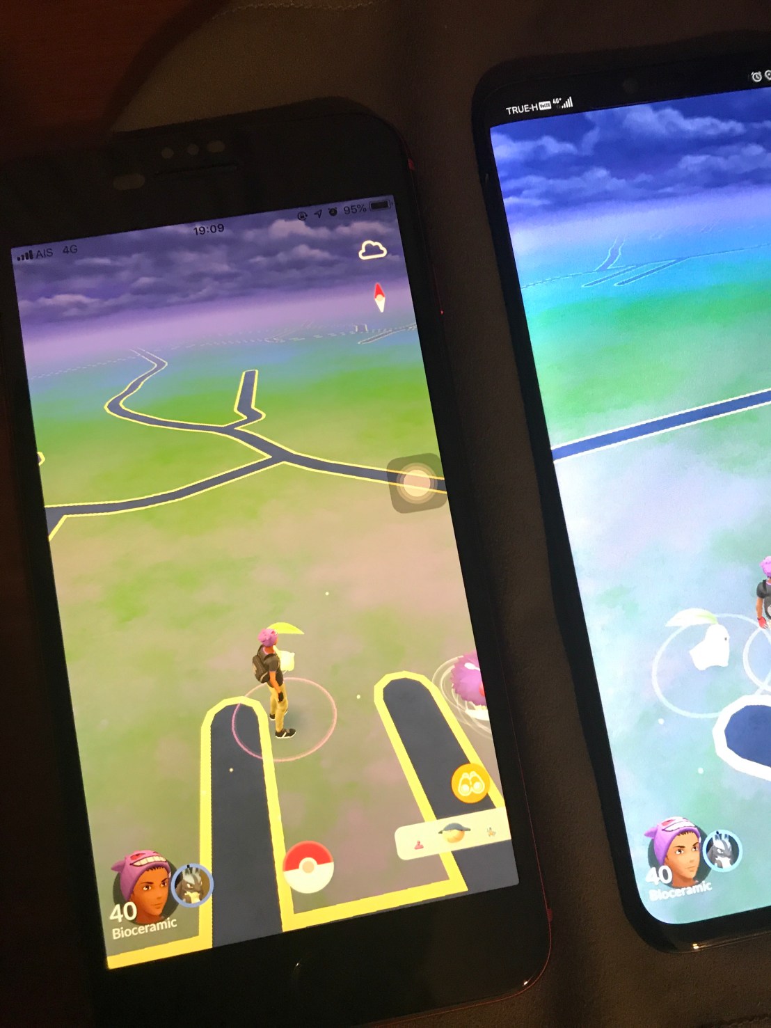 แต่ระยะที่วัดได้จาก map ของ Pokestop จะไกลกว่า หมายความว่า ถ้าใช้เครื่อง Android จับ Pokemon จะได้เปรียบกว่าใช้เครื่องฝั่ง iOS ครับ เพราะยืนได้ไกลกว่า