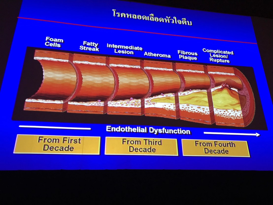 ถ้าไขมันยังพอกไม่ถึง 70% Pt จะไม่มีอาการใดๆ เพราะถ้าร่างกายไม่ได้ออกแรงหนัก เราจะไม่รู้สึกอะไรเลย (Chronic coronary syndrome) จนกว่าจะเข้าขบวนการแตกตัวของไขมัน (Plaque rupture) จึงจะแสดงอาการ Acute coronary syndrome