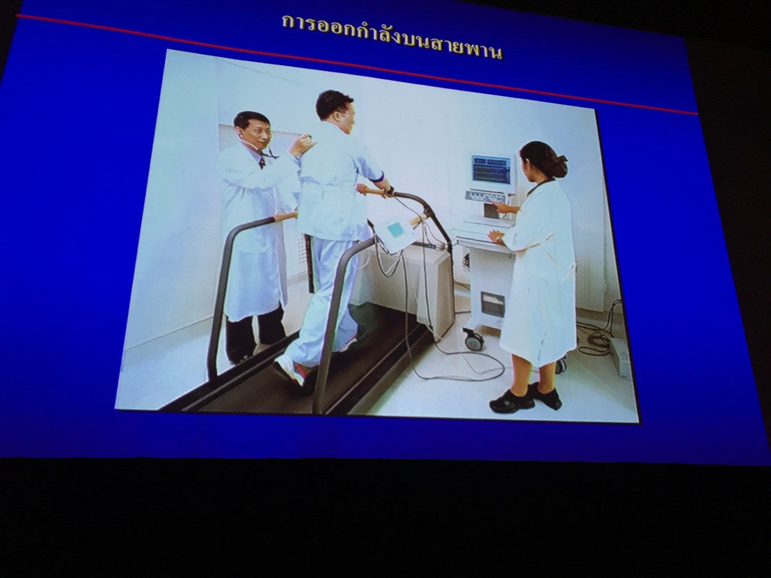 รูปแสดง การเดินสายพาน เพื่อเพิ่ม workload ให้หัวใจ (EST: Exercise Stress Test)