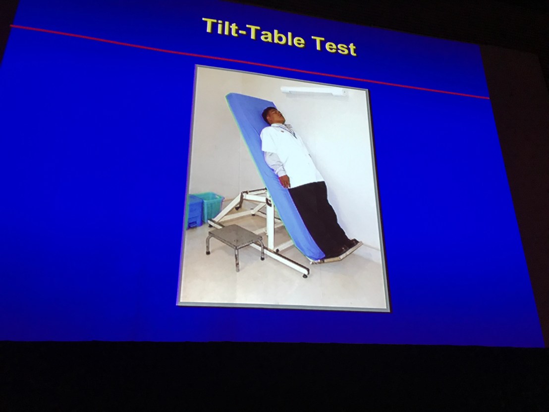 การ test นี้ใช้สำหรับคนที่แข็งแรง แต่มีอาการเป็นลม เมื่อมีตัวกระตุ้นบางอย่าง เช่น การเข้าห้องน้ำแล้วเป็นลม ในช่วงที่มีตัวกระตุ้นเช่น มีประจำเดือน etc. ถ้ายัง exam ไม่พบอะไรผิดปกติ ก็จะทำ Tilt-table test