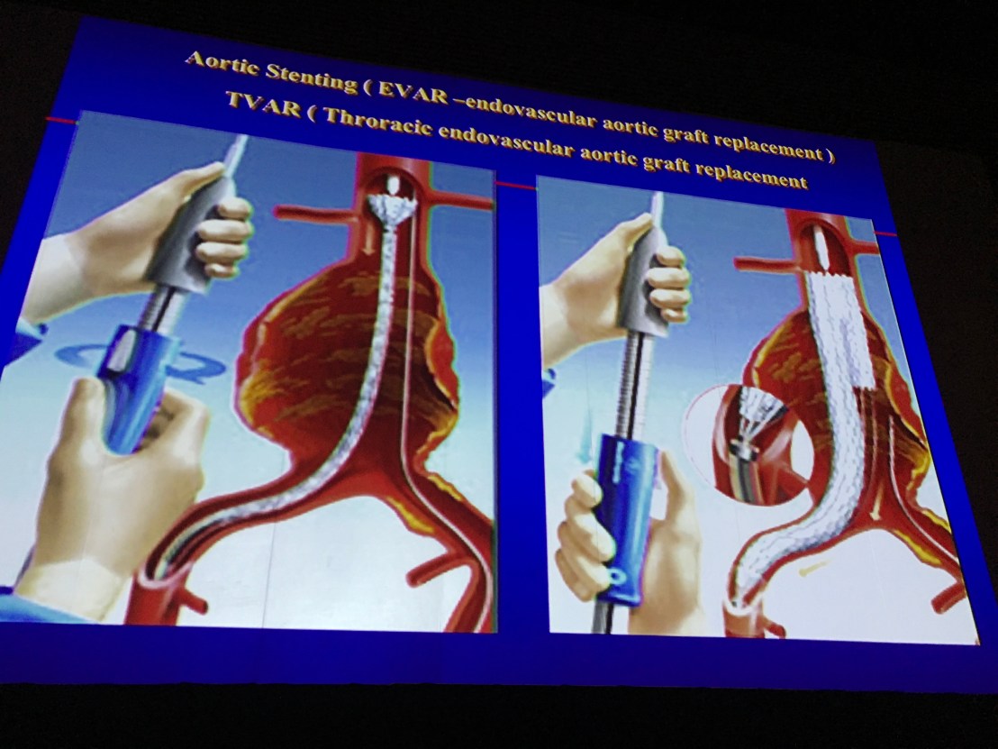อันนี้เป็นอุปกรณ์ที่ใส่ใน Pt ที่มี aneurysm เพื่อป้องกันไม่ให้ aneurysm แตก โดยเราไม่ต้องเปิด Aorta เรียก EVAR หรือ TVAR (การใส่หลอดเลือดเทียมชนิดขดลวดหุ้มกราฟต์ (stent graft) ผ่านทาง femoral arteryหรือ iliac artery เพื่อนำ stent graft ไปวางแทนที่หลอดเลือดโป่งพอง เพื่อให้เลือด ไหลผ่านหลอดเลือดเทียมโดยไม่เข้าไปในบริเวณ aneurysm )