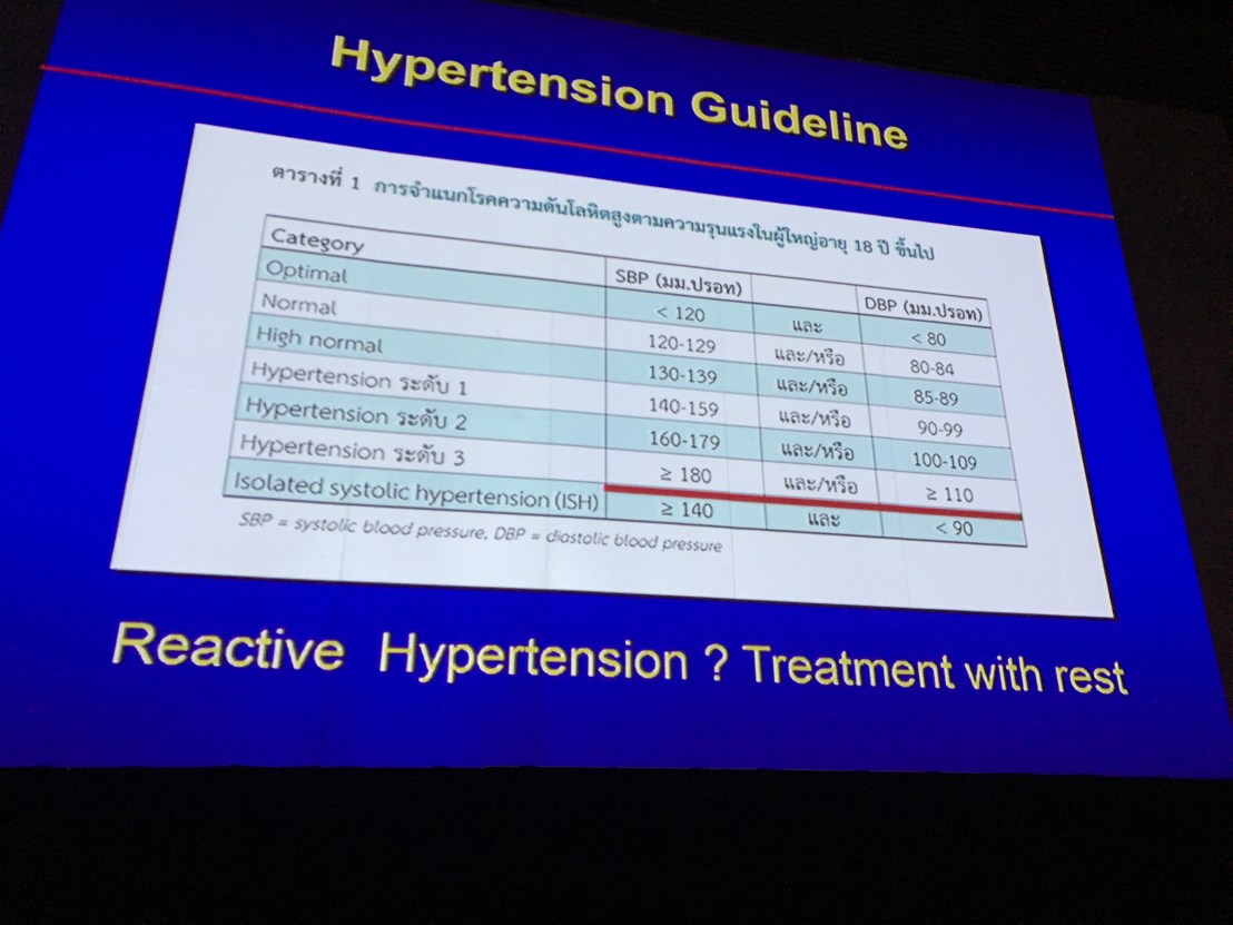 เราจะ Dx HP ก็ต่อเมื่อ เป็น Office BP (คือไม่ใช่ BP ที่อยู่ในภาวะ stress ต้องนั่งนิ่งๆ ซัก 5 นาที แล้ววัด เช่น ไม่ใช่เพิ่งวิ่งแล้วมาวัด หรือเพิ่งดื่มกาแฟ –> เรียก BP ที่ไม่ใช่ Office BP เหล่านี้ว่า Reactive HP)