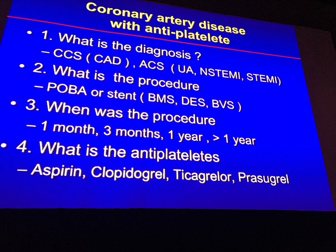 1.ไปทำเพราะเป็นโรคอะไร? เช่น ทำเพราะหมอแนะนำ หรือเกิดจาก Heart attack แล้ว admit เพราะถ้าทำเพราะเป็น ACS ผู้ป่วยต้องได้รับ antiplatelet drug แน่นอนอย่างน้อย 1 ปี แต่ถ้าทำเพราะ CAD หรือ CCS อาจจะมีช่วงกินยาที่สั้นลงเหลือ 6 เดือน