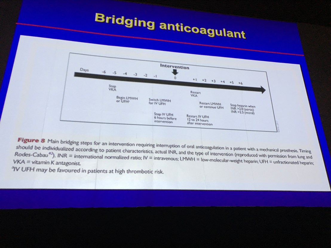 แต่ถ้าเป็น anticoagulant ต้องดูว่า Pt กินเพราะอะไร? เช่นเพราะ CHA2D2-VASc สูง หรือเพราะเป็น Mechanical valve คือ สมมติถ้าเป็น Mechanical valve ที่เป็น Mitral position ถือว่า serious มาก ถ้าจะ interrupt VKAs ( ต้องมีการทำ Bridging)