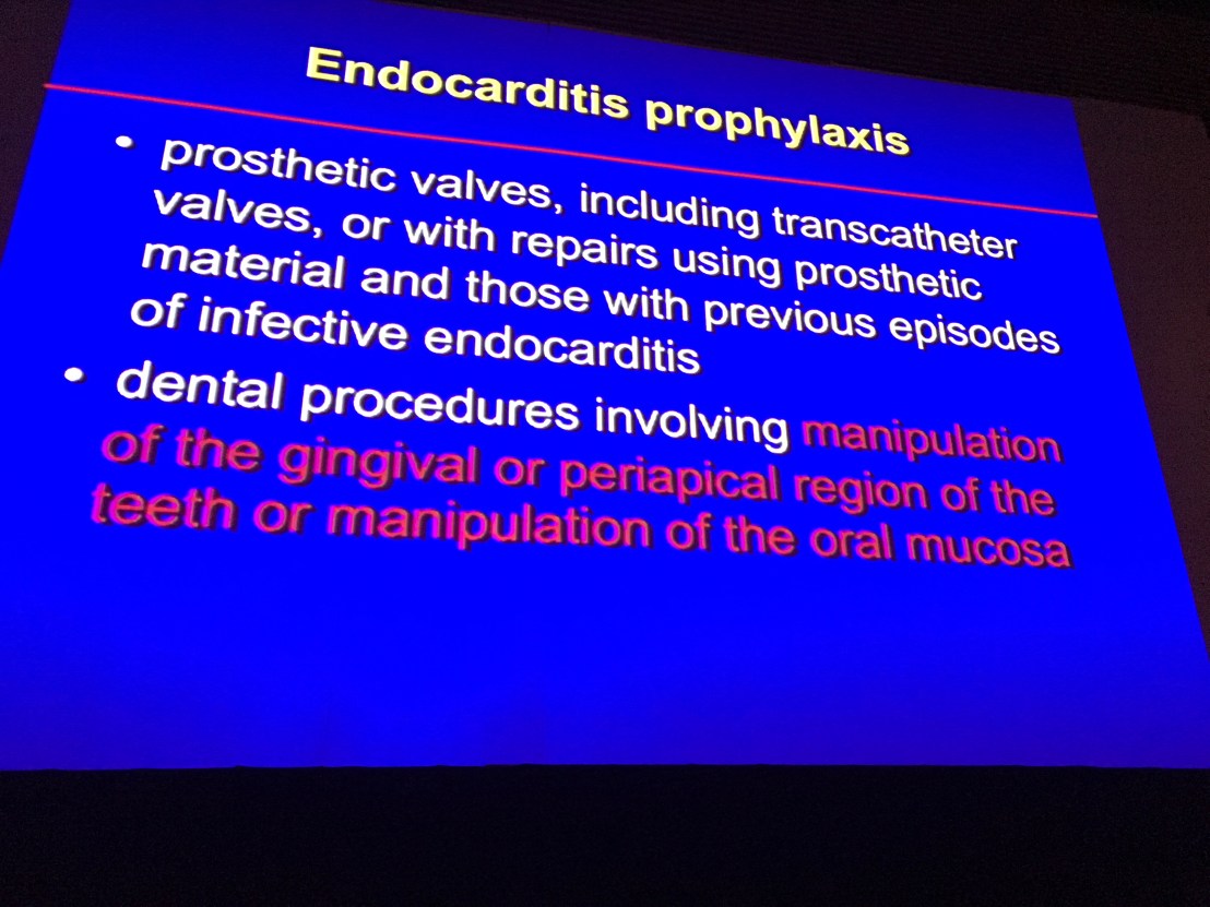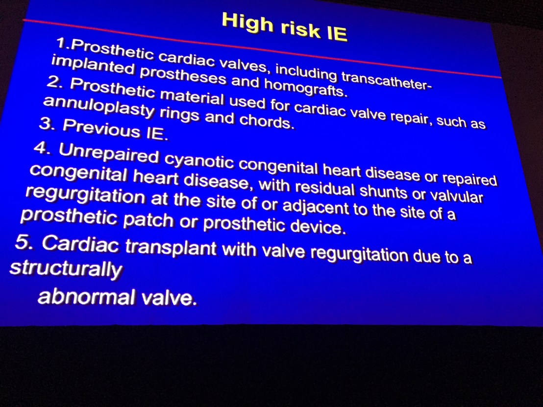 เรื่องสุดท้าย คือ IE ใน Guideline ล่าสุดจะแนะนำให้ prophylaxis ใน 5 condition ข้างล่างนี้เท่านั้น