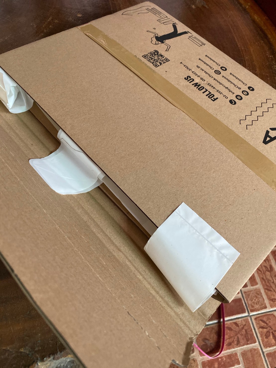 ใช้เทปยึดแล้วมี plastic bag ห่ออีกชั้น เผื่อกันโดนความชื้นระหว่างขนส่ง