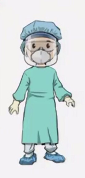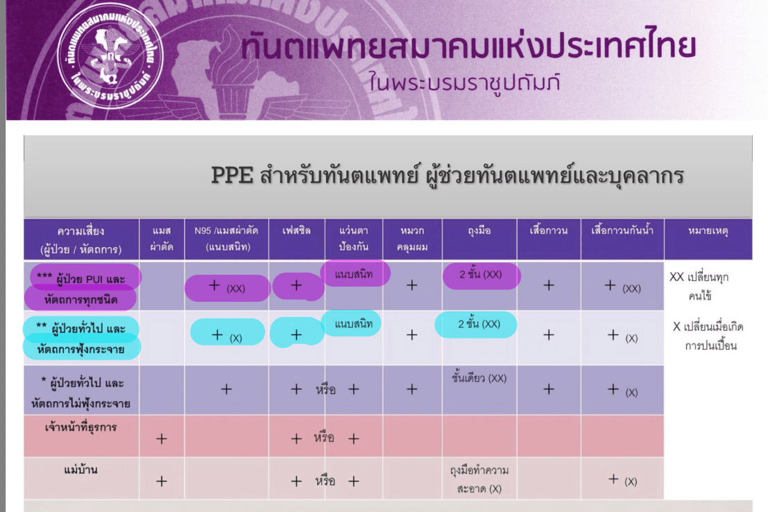 2.การใช้ PPE มีหลักการเหมือนกับของทันตแพทย์ ยกเว้นการใช้ respirator ขั้นสูงสุด คือ PAPR (Powered Air-Purifying Respirator)