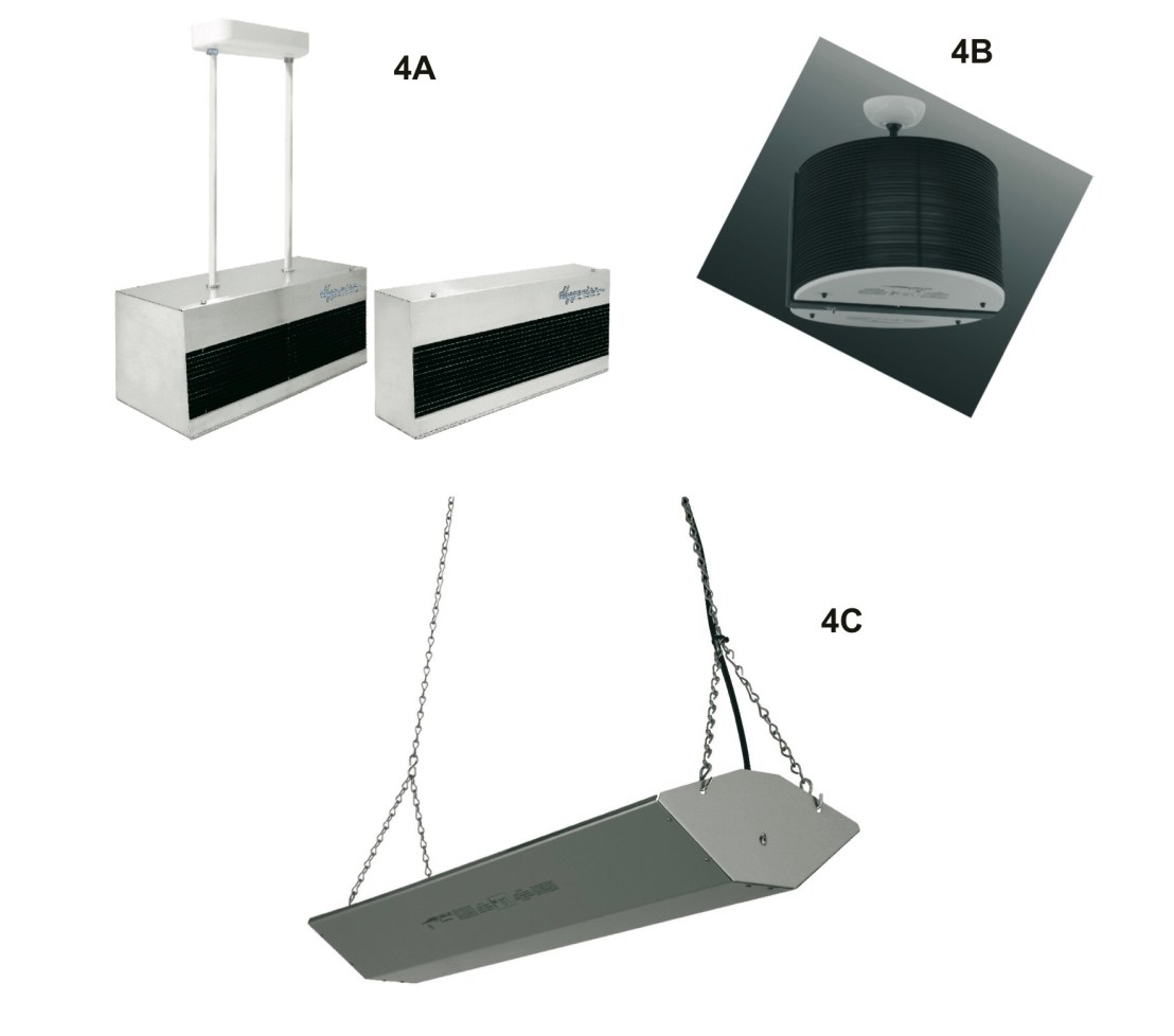 แสดงต้วอย่างเครื่อง A. wall mount B. Pendulum C.Ceiling fixtures