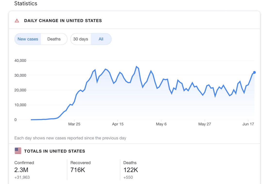 ลองมาดูสถิติใน US ตั้งแต่เริ่มมีการแพร่ระบาด จนถึงวันที่ 17 มิ.ย. 2563