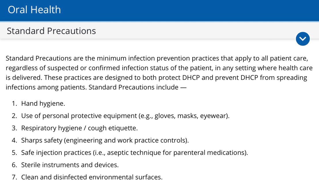 Ref: https://www.cdc.gov/coronavirus/2019-ncov/hcp/dental-settings.html