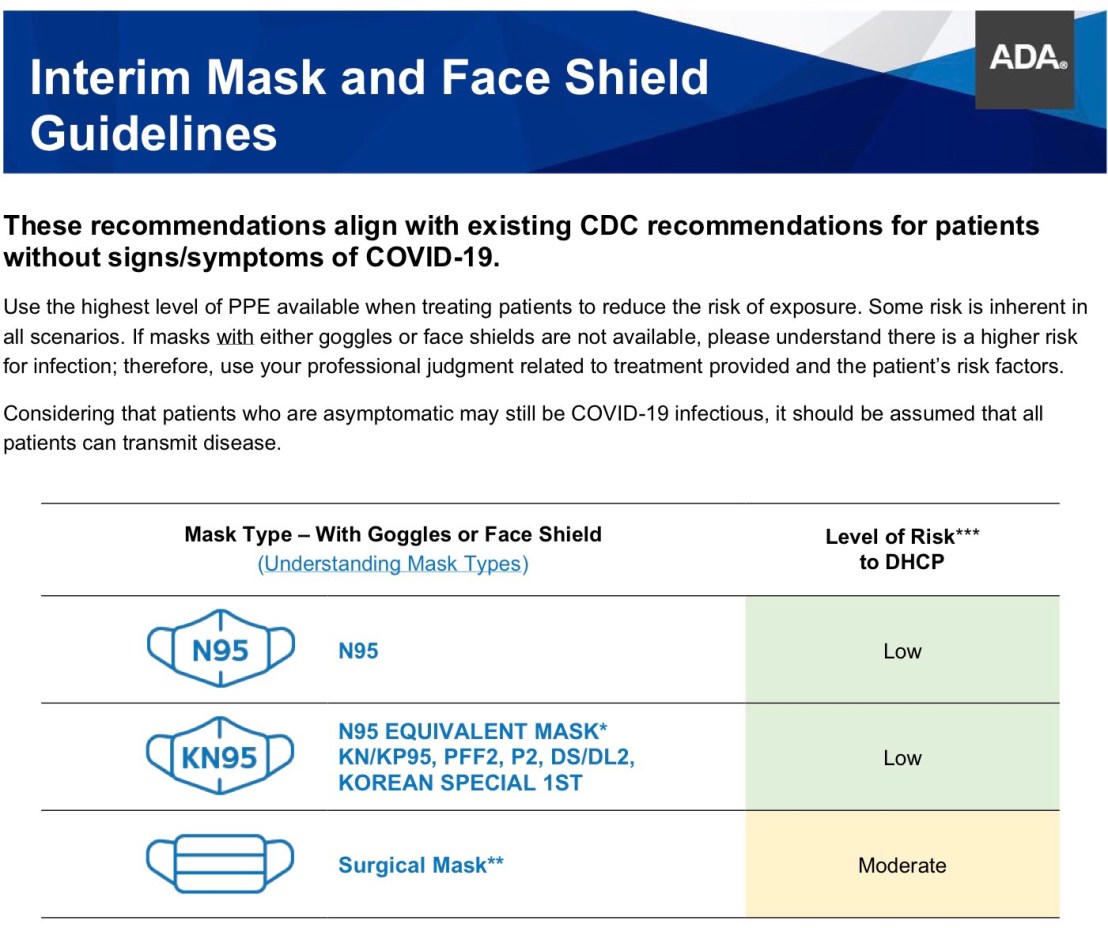 ADA classify mask ตามระดับของความเสี่ยงจากการทำงาน (risk of exposure) ดังนี้