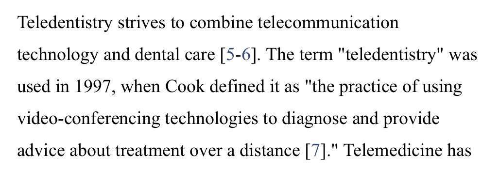 ถ้าลองค้น paper Teledentistry มันจะมีเยอะมากครับ แต่ละ paper จะชี้ตรงกันว่า Teledentistry ถูกใช้เป็นครั้งแรกในปี 1997 (พ.ศ. 2540 ปีนั้นรถไฟฟ้า BTS สายสุขุมวิทใกล้เสร็จแล้วครับ)