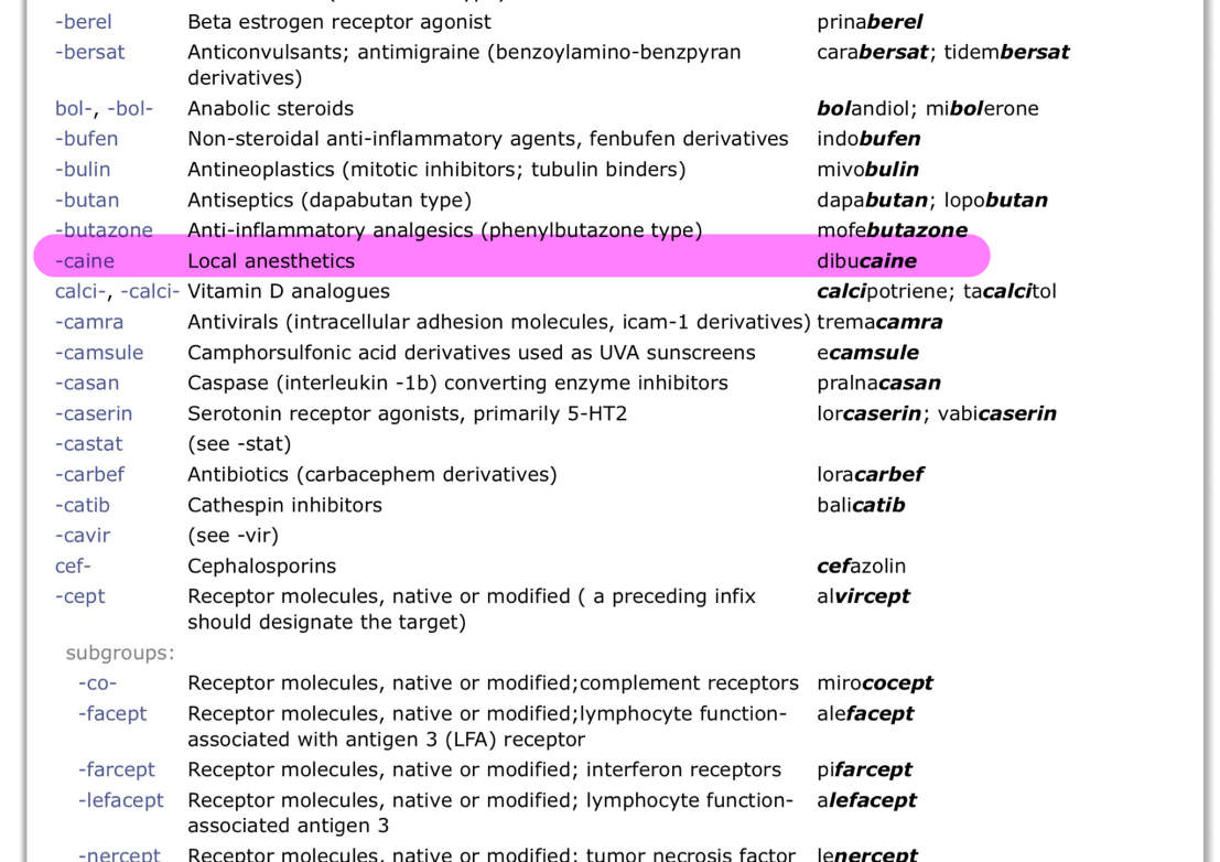 คำว่า -เคน (-caine) ทำให้คนทั่วไปไม่สามารถแยกความแตกต่างของยาได้