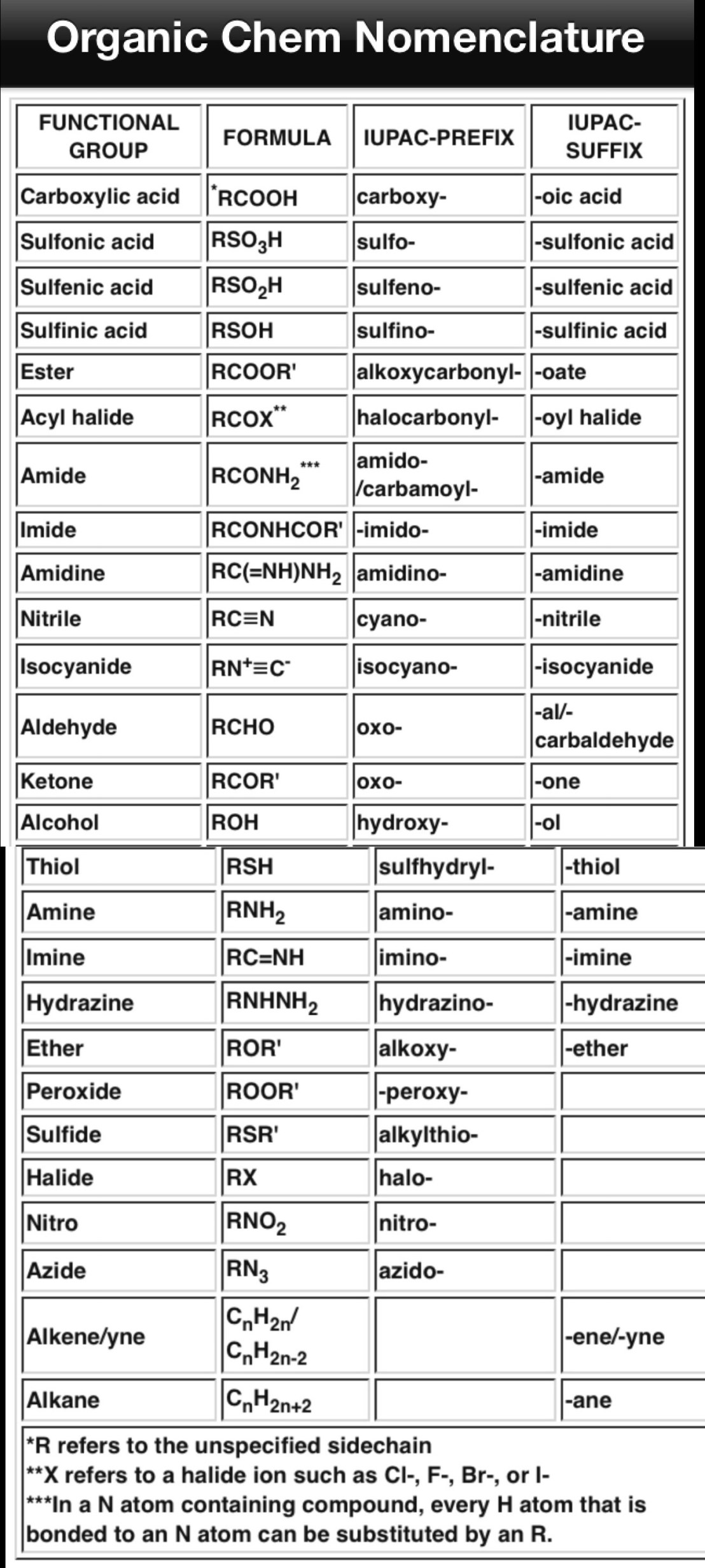 ตารางแสดงชื่อเรียกของ functional group ที่เจอได้บ่อย