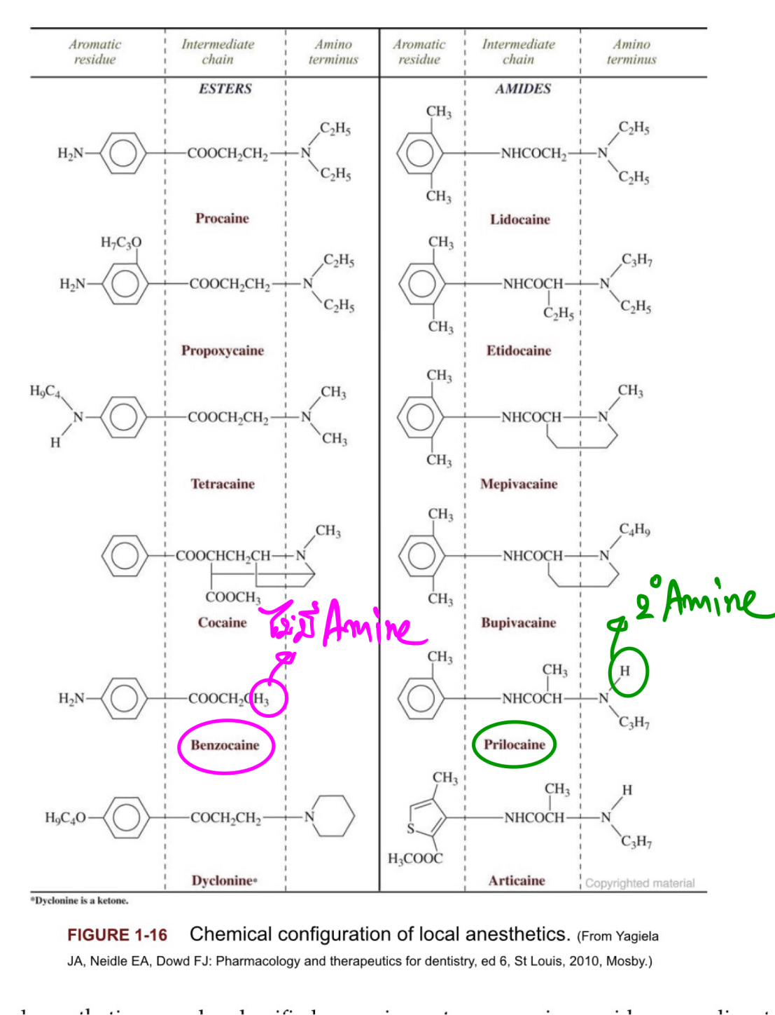 Benzocaine จึงเป็น LA ที่ไม่มี Amine group คือเป็น -CH2- แล้วต่อกับ -H เลย –> -CH3 จึงจัดเป็น Ester ไม่ใช่ Amino ester
