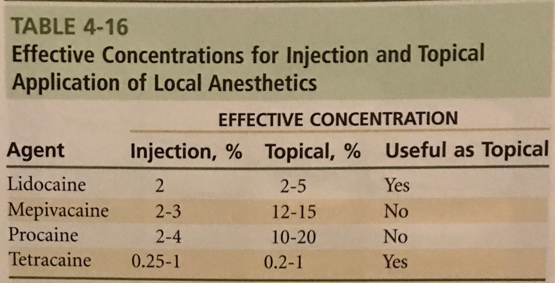 จากตารางจะเห็นว่า มีเพียง Lidocaine กับ Tetracaine ที่ผ่าน (conc ใกล้เคียง form ฉีด) สำหรับนำมาใช้ใน form topical (สังเกตตารางนี้ ไม่นับ Benzocaine เพราะมัน Born to be topical LA เท่านั้น)