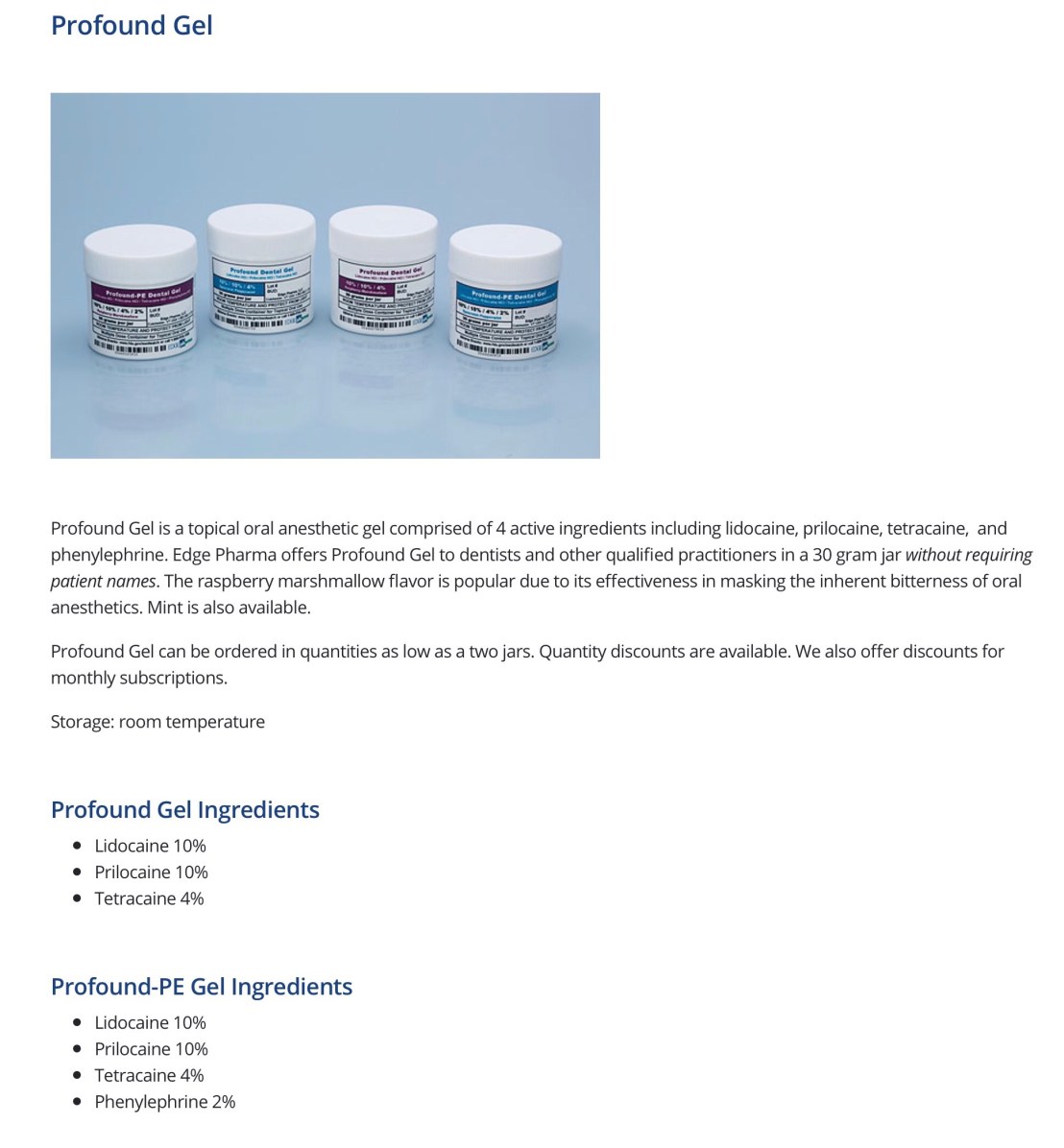 Profound ใช้ 10% Lidocaine, 10% Prilocaine และ 4% Tetracaine (เอา Amino ester กลับเข้ามา) ข้อบ่งใช้คือ Soft tissue laser surgery