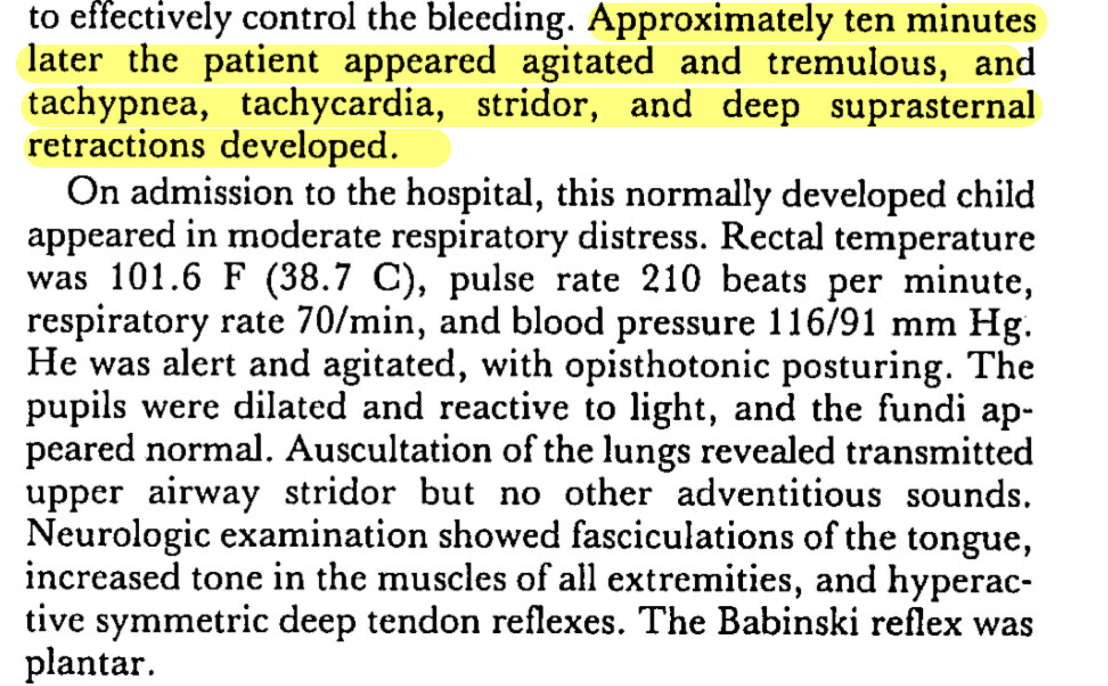 Pt เด็กใน case report ได้รับ TAC 2 ml นั่นคือ ได้รับ tetracaine 10 mg และ Cocaine 236 mg ( ในตอนนั้น max topical mucosa dose ใน adult คือ 80 mg และ 200 mg ตามลำดับ)