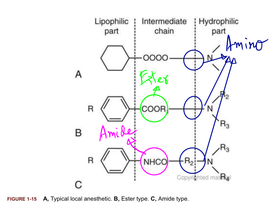 เราเรียก LA ว่า Amino esters และ Amino amides เพราะ functional group ที่เกิดจาก Carboxylic group และ Amine group ยึดเข้าด้วยกัน ทำให้ LA เป็น Amino compounds