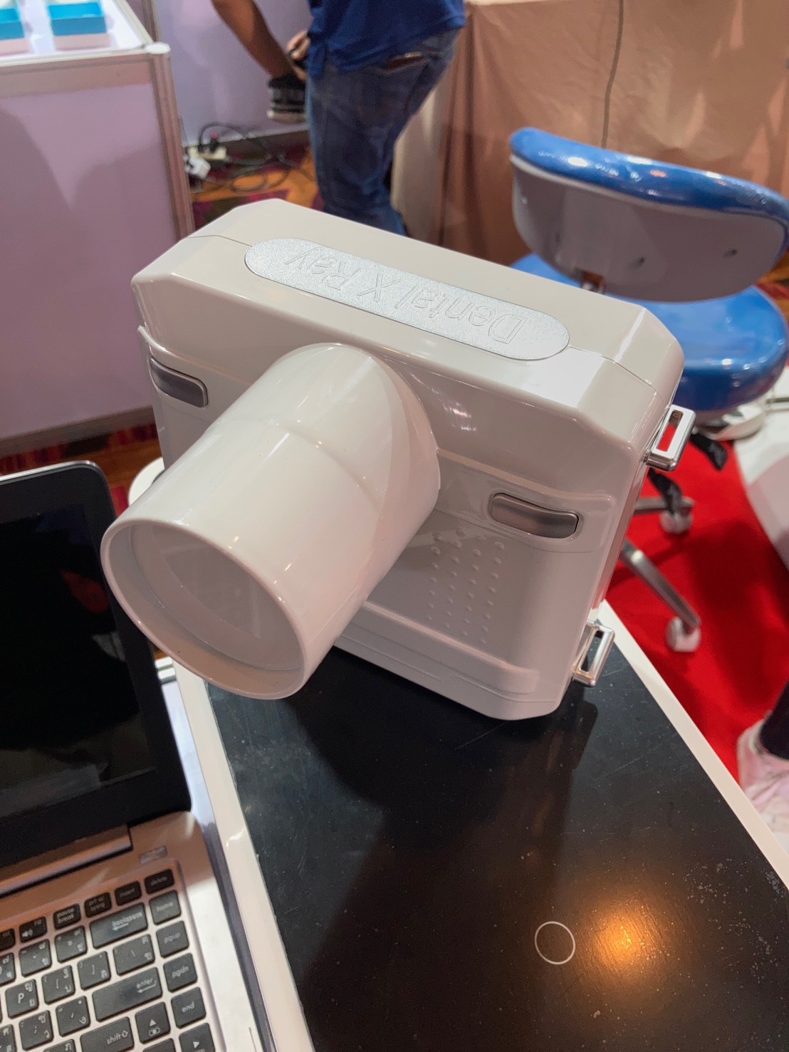 Handheld ก็มีให้ชม แนะนำว่า ถ้าจะนำมาใช้ที่คลินิก ควรปรึกษา สำนักรังสีและเครื่องมือแพทย์ กรมวิทยาศาสตร์การแพทย์ ของ สธ. ก่อนนะครับ เพื่อส่ง จนท.มาตรวจวัดปริมาณรังสีและการกระเจิง เท่าที่สังเกต ไม่พบชุดกำบังรังสีสำหรับผู้ถ่าย และอุปกรณ์ป้องกันที่จำเป็น ขายร่วมด้วย (หรือบูธอาจจะโชว์เครื่องเฉยๆ เท่านั้น accessories อื่นๆ ไม่ได้เอามาให้เห็นด้วยก็ได้ ทั้ง Apron, Glove, Shielding Glass)