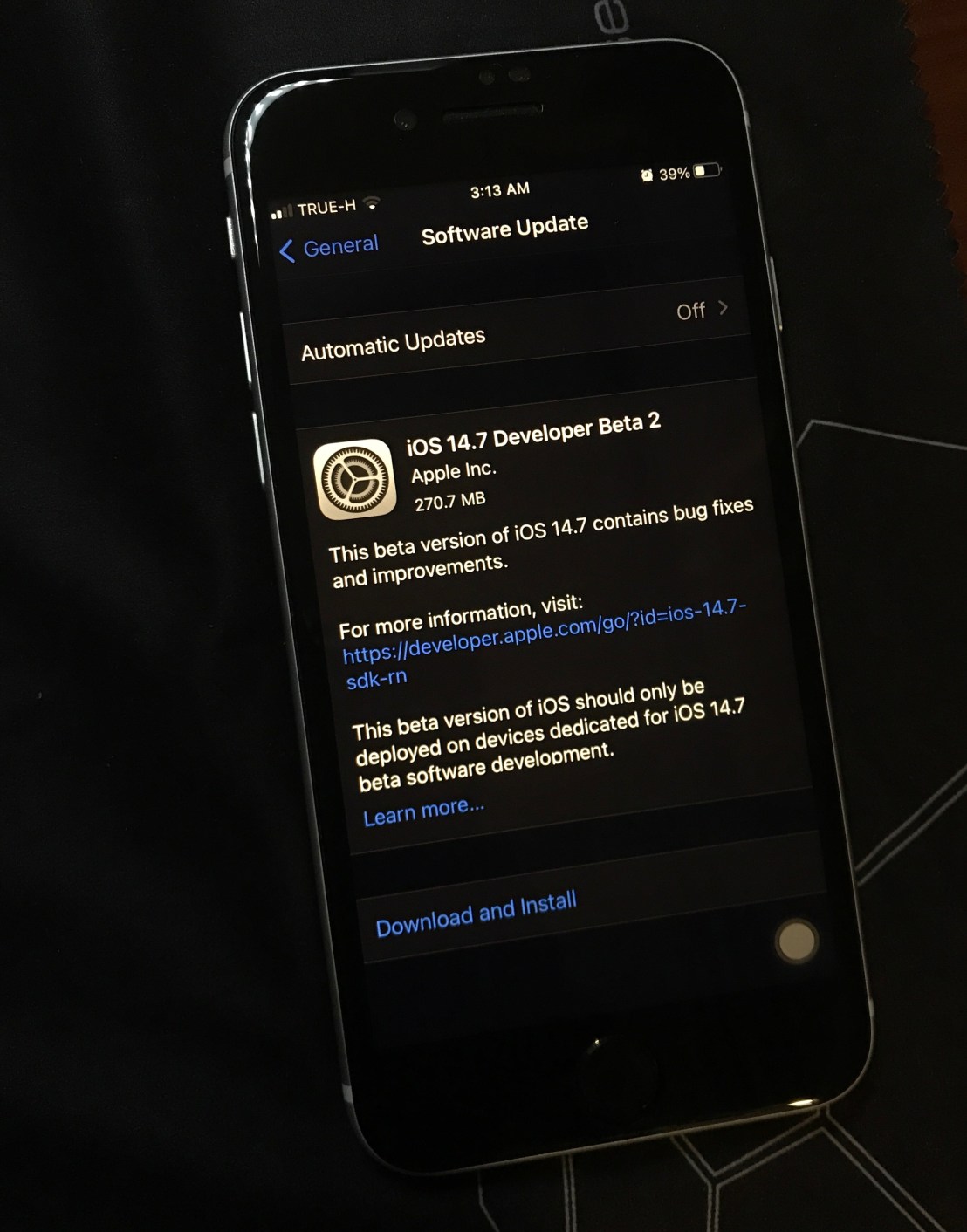 ถ้าเราไปดูที่ Settings –> General –> Software update จะยังขึ้นเป็นของ iOS 14.7 ครับ