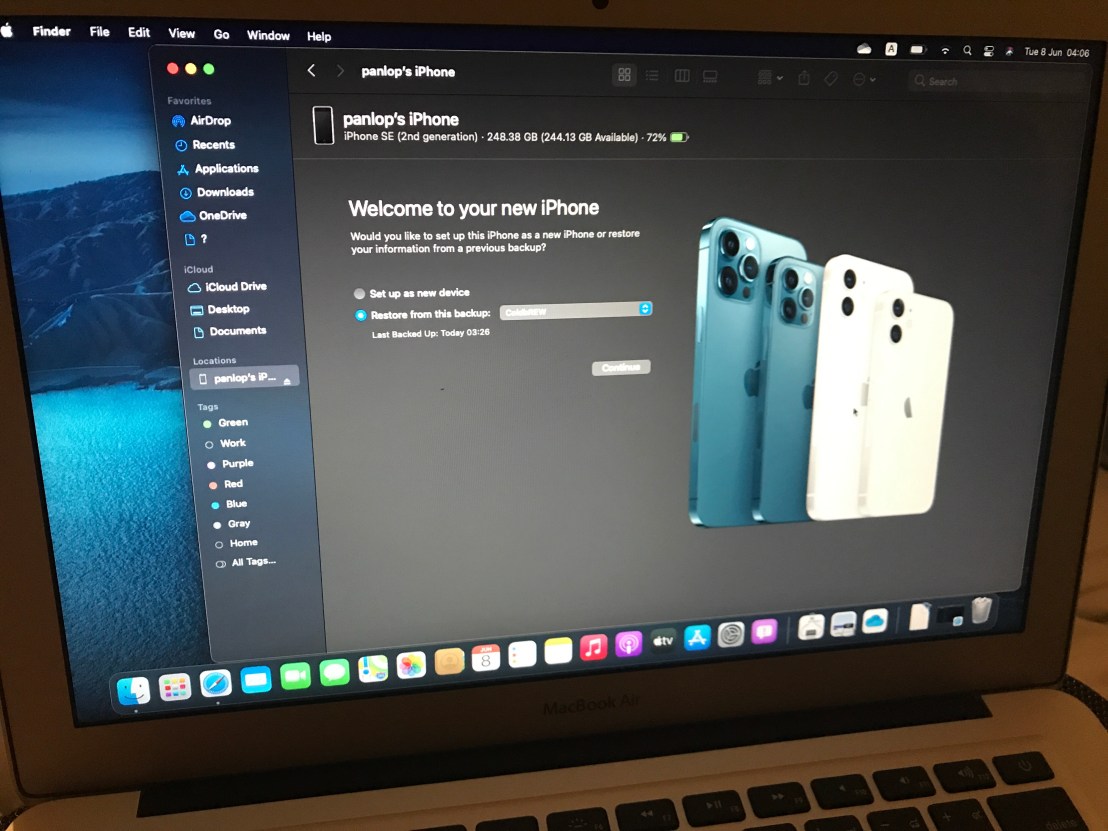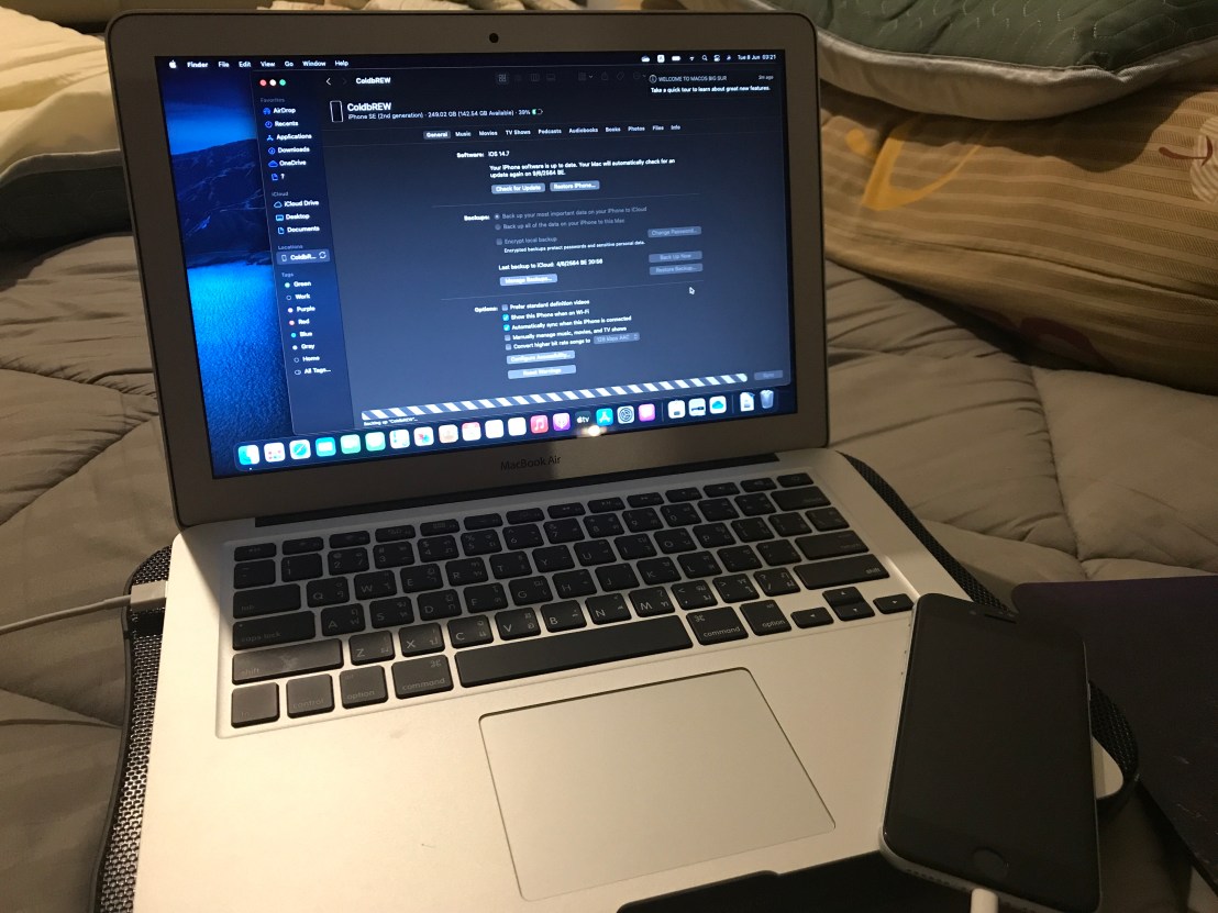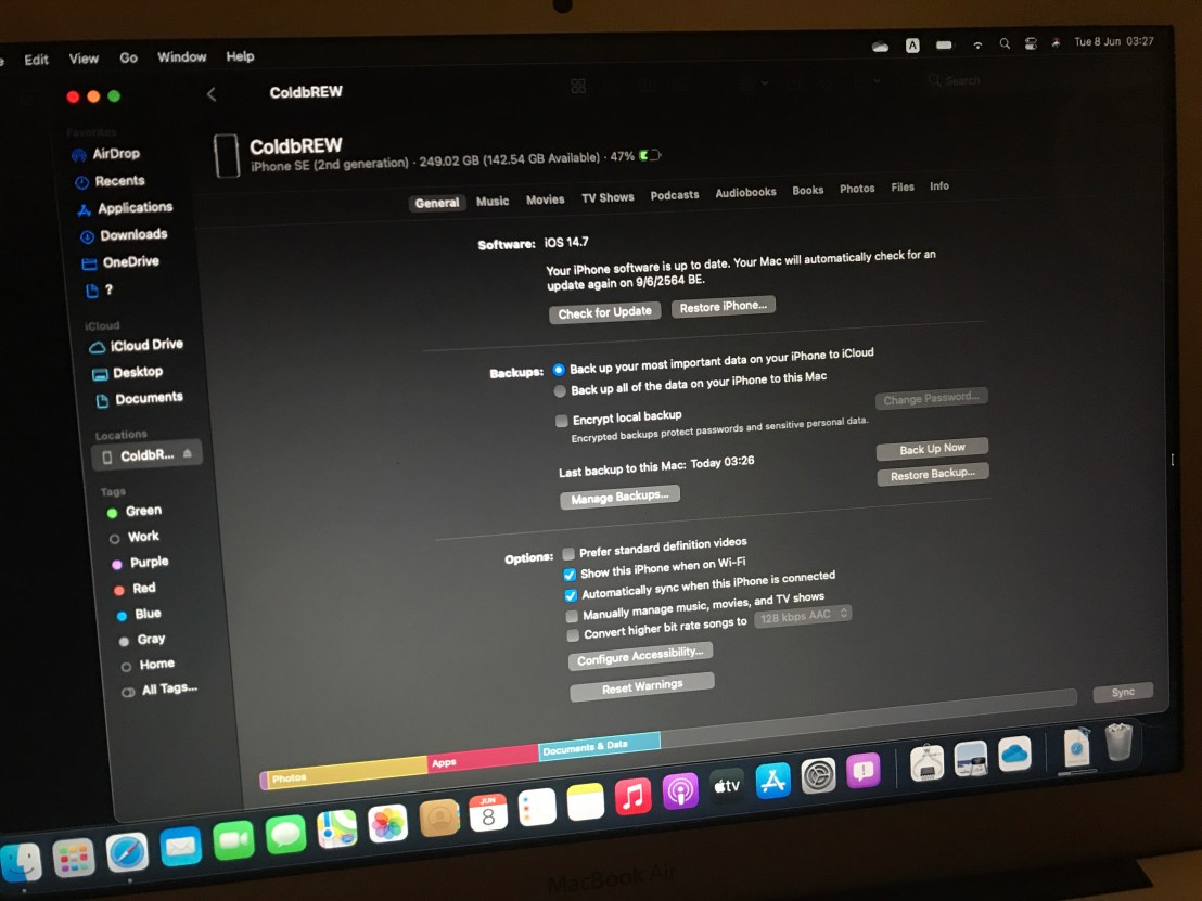 1. Back up ข้อมูลทั้งหมดในเครื่อง SE ที่ version iOS 14.7 โดยผ่าน Finder