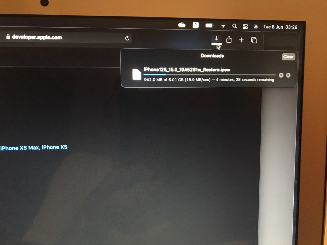 จากนั้นเข้า developer.apple.com เพื่อ download iOS 15 ของ SE มาเก็บไว้ใน Macbook