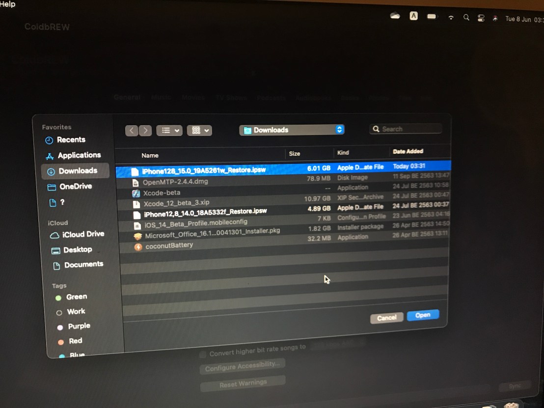 กดปุ่ม Option ที่แป้น Mac + click Restore ที่หน้า Finder ของ SE เพื่อเลือก ROM ที่ต้องการติดตั้ง