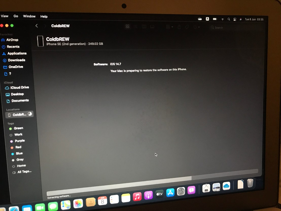 จากนั้นเข้าสู่ขบวนการ Extract,Prepare, Verify และ Restore iOS 15 beta