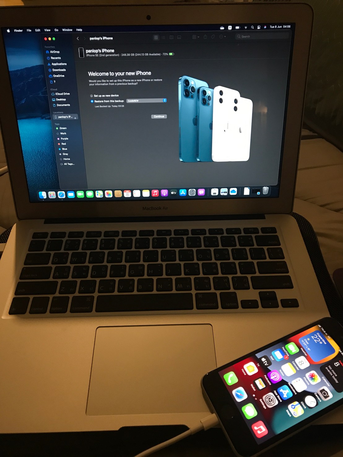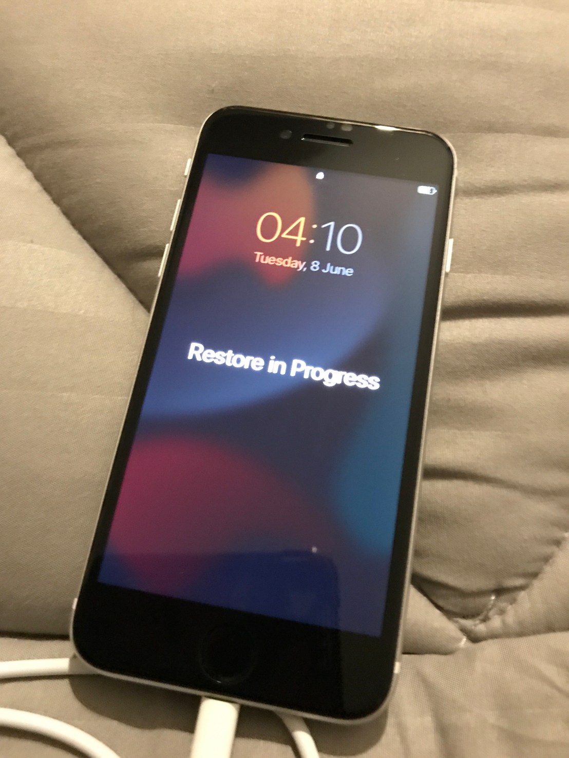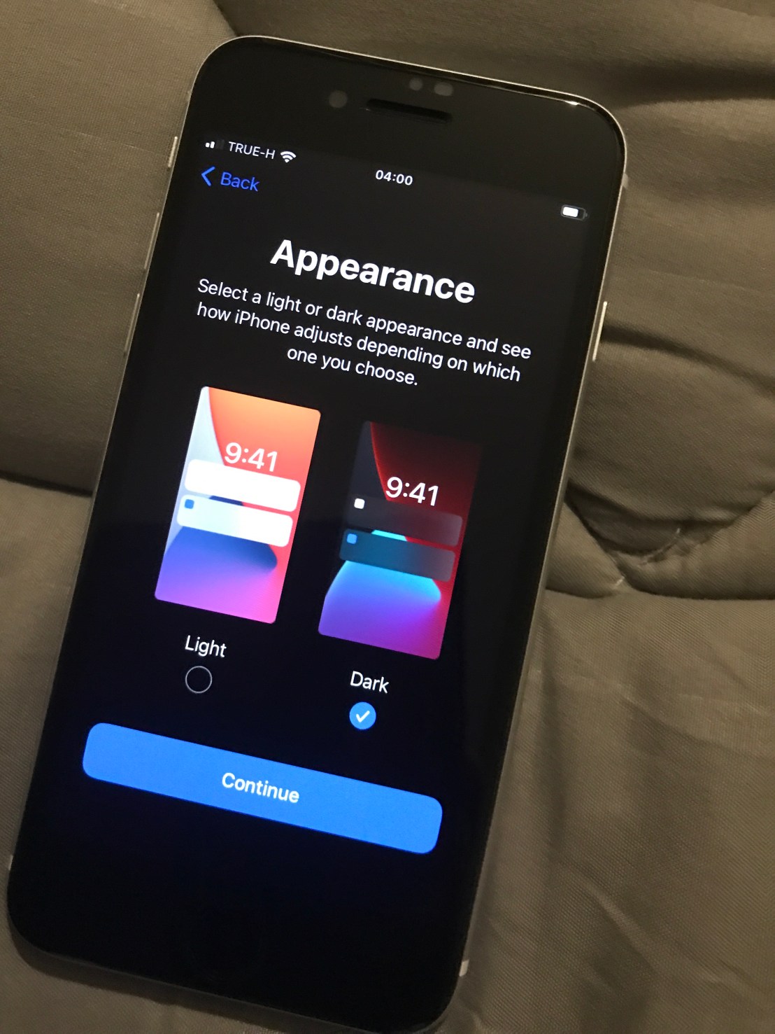 รูปแสดงหน้าตา SE iOS 15 beta ที่ Restore จาก backup iOS 14.7