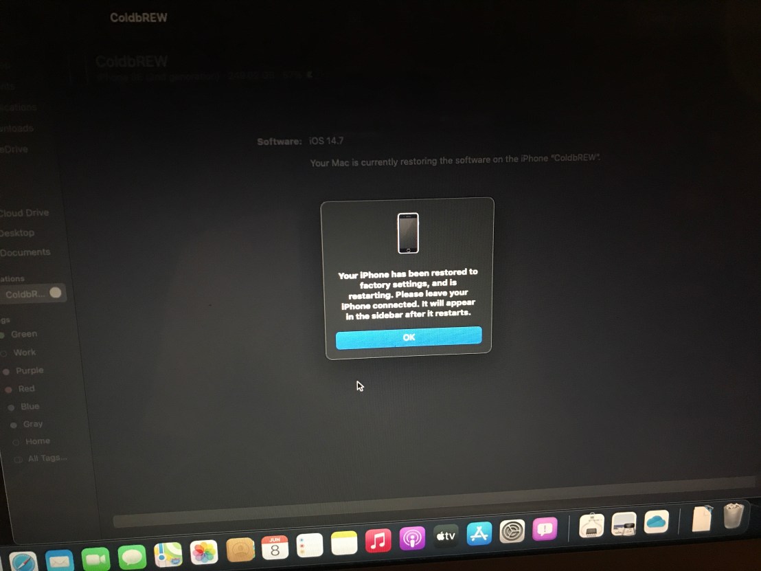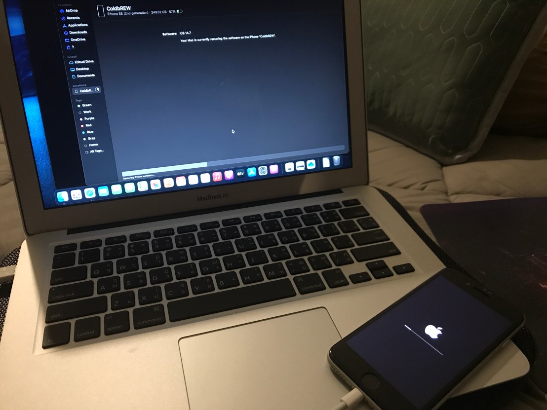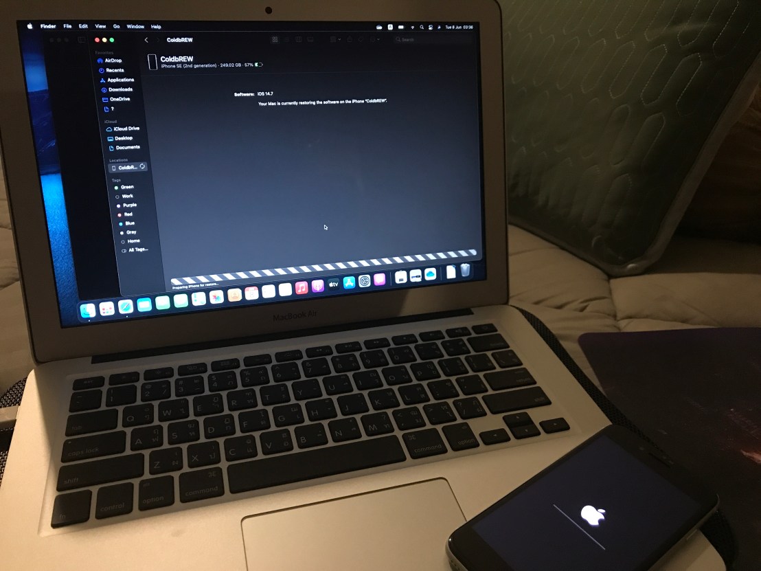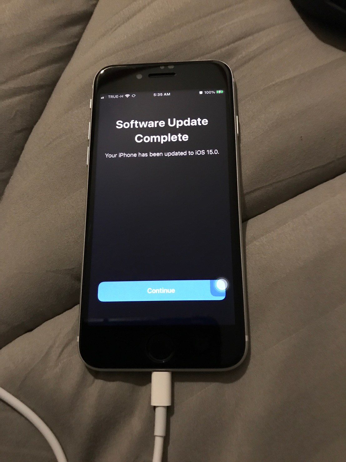 รูปแสดงหน้าตา SE iOS 15 beta ที่ Restore จาก backup iOS 14.7