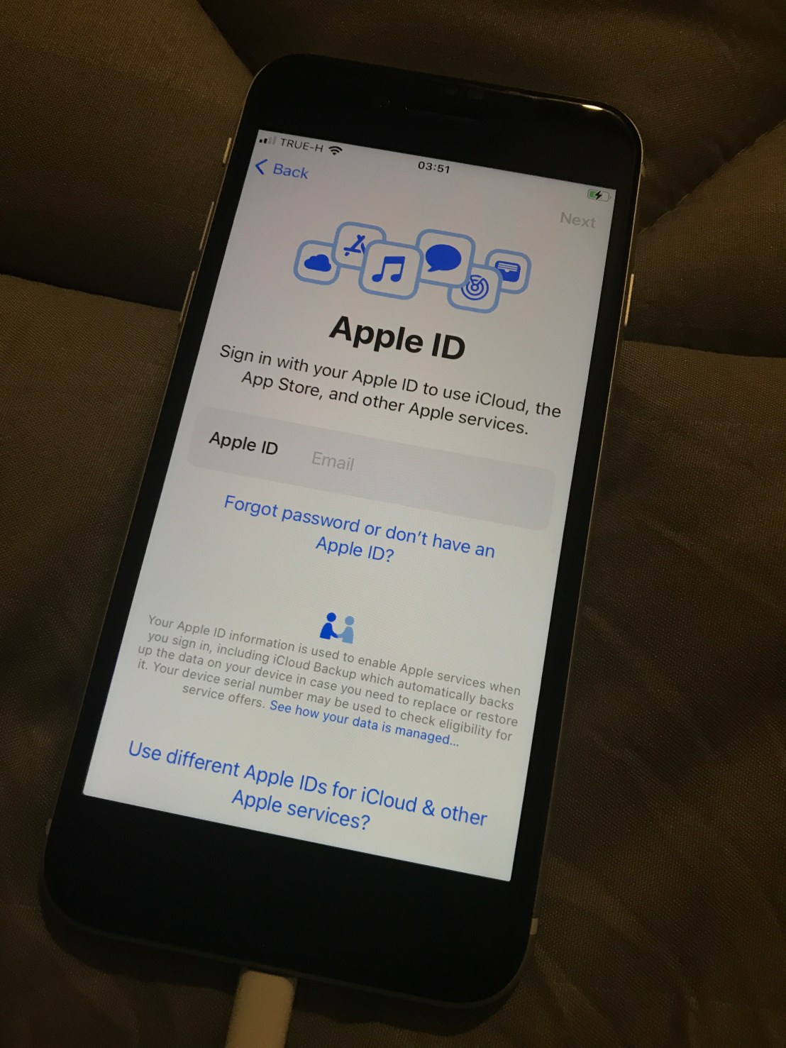 เมื่อเลือก Don’t Transfer Apps & Data จะมาเข้าหน้า log in Apple ID ครับ