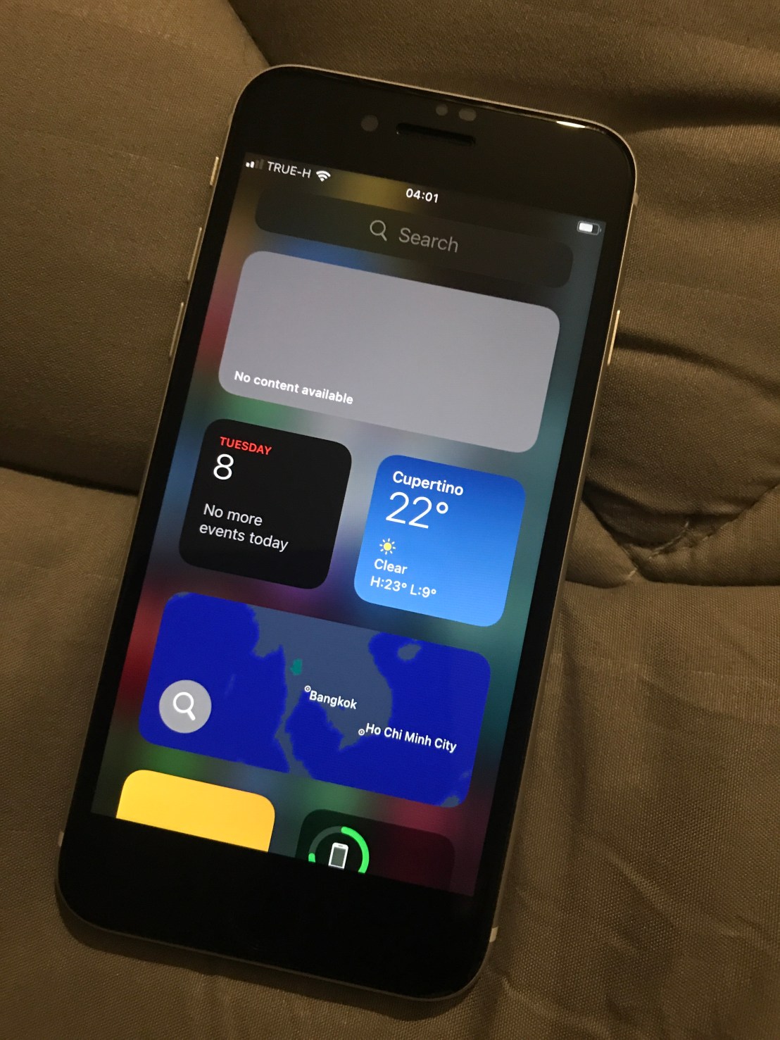 เมื่อเข้าหน้า Home จะเห็น Apps และ Widgets ที่เคยใช้แบบตอนเป็น iOS 14 ยังว่างเปล่า เพราะอยู่ในขั้นตอนการติดตั้ง Apps และ Widgets คืนทุกตัวครับ