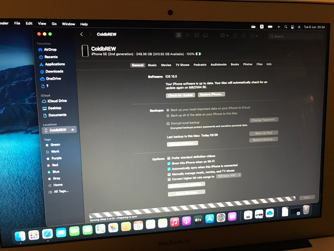 ชื่อเครื่องคือ ColdbREW สำรองข้อมูลล่าสุดเมื่อเวลา 03.26 วันนี้