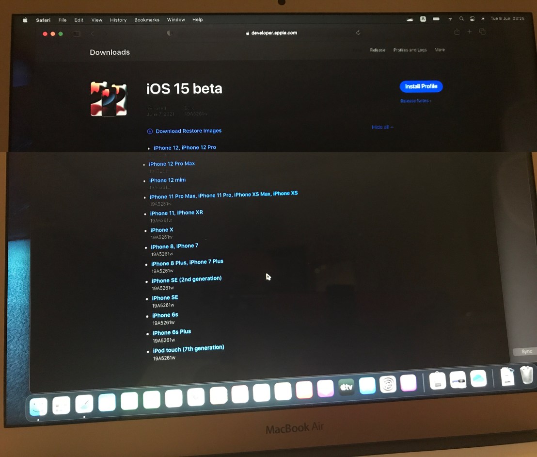 กลับมากดติดตั้ง Profile ของ iOS 15 beta จากหน้าเวบ developer ครับ