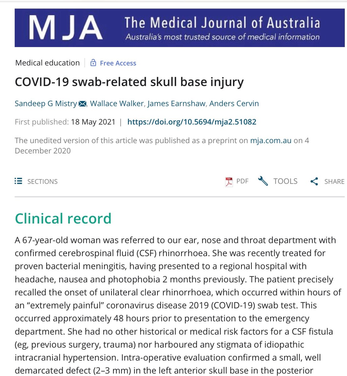 รายงานเคส Skull base injury จากการทำ nasopharyngeal swab เพื่อหาเชื้อ COVID-19 ครับ