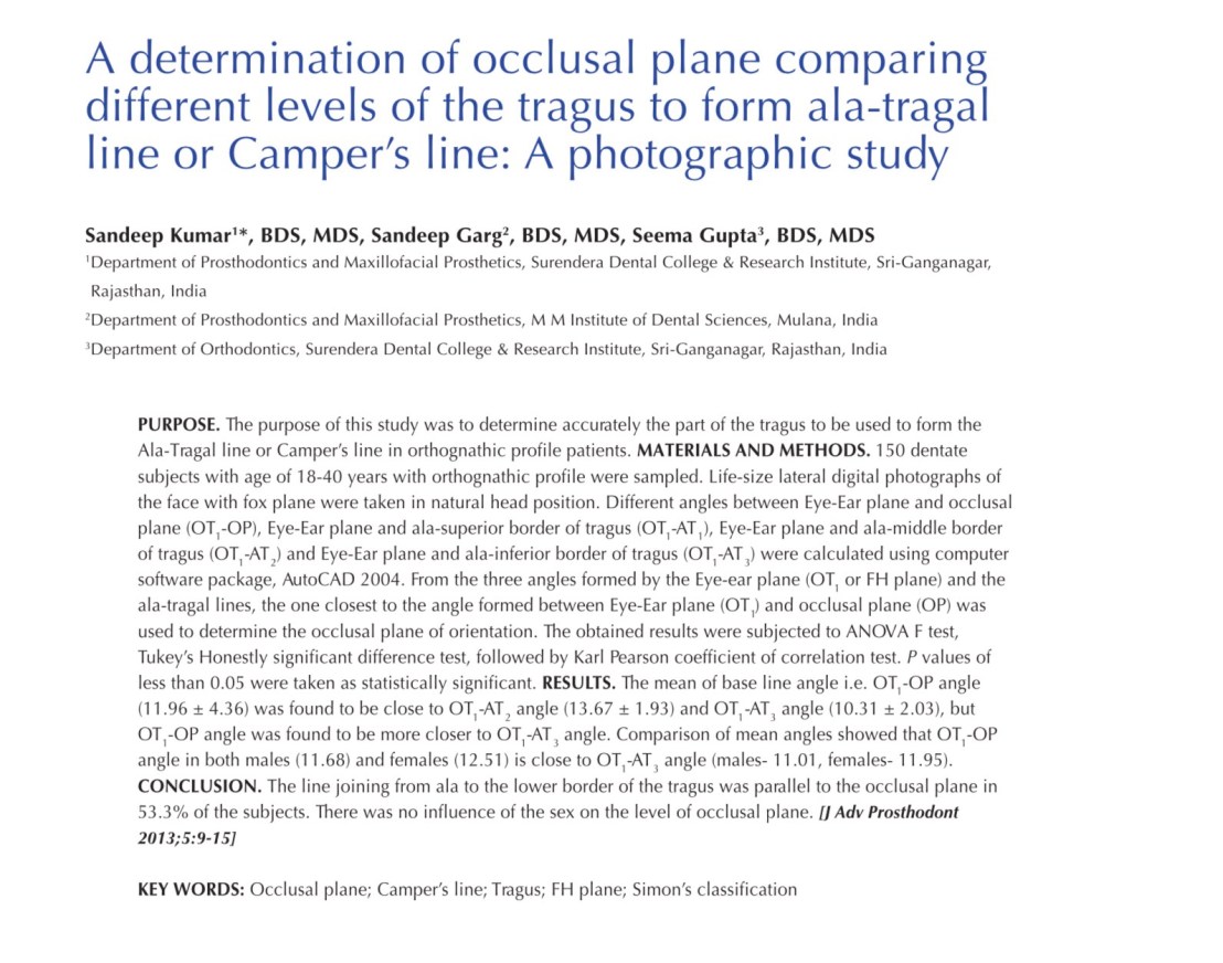สิ่งที่น่าสนใจคือ ใน Skeletal ปกติ ถ้าใช้ 3 ตำแหน่งในการวัด Occlusal plane