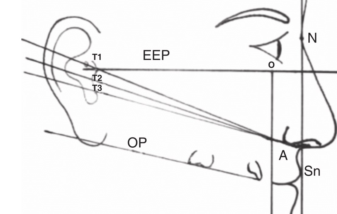 พบว่า ตำแหน่ง T3 และ T2 ตรงกับ Occlusal plane จริงๆ มากที่สุดครับ (ถ้าเชื่อ GPT-9 ขอบบนของ tragus (คือ T1) ไม่ค่อยไปกับ Occlusal plane)