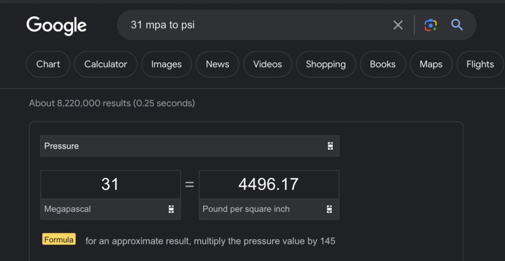 ดังนั้น 1 Bar = 100,000/1,000,000 = 0.1 MPa