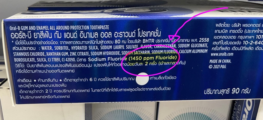 ทีนี้ ยาสีฟันสูตรทั่วไปที่ใช้กันจะมี ปริมาณฟลูออไรด์ ~ 1,500 ppm ( มากที่สุดที่หาซื้อในทั่วไป)
