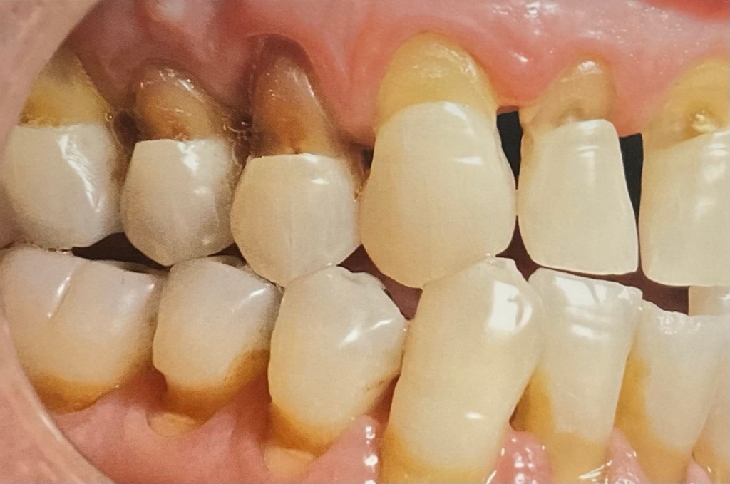 แต่ประวัติจริงๆ ของคนไข้คนนี้ คือ เขาไม่ได้ใช้การแปรงฟันด้วย แปรงสีฟัน และ ยาสีฟัน ครับ แต่ให้ประวัติคือ ชอบกินส้มมาก และกินวันละหลายลูก