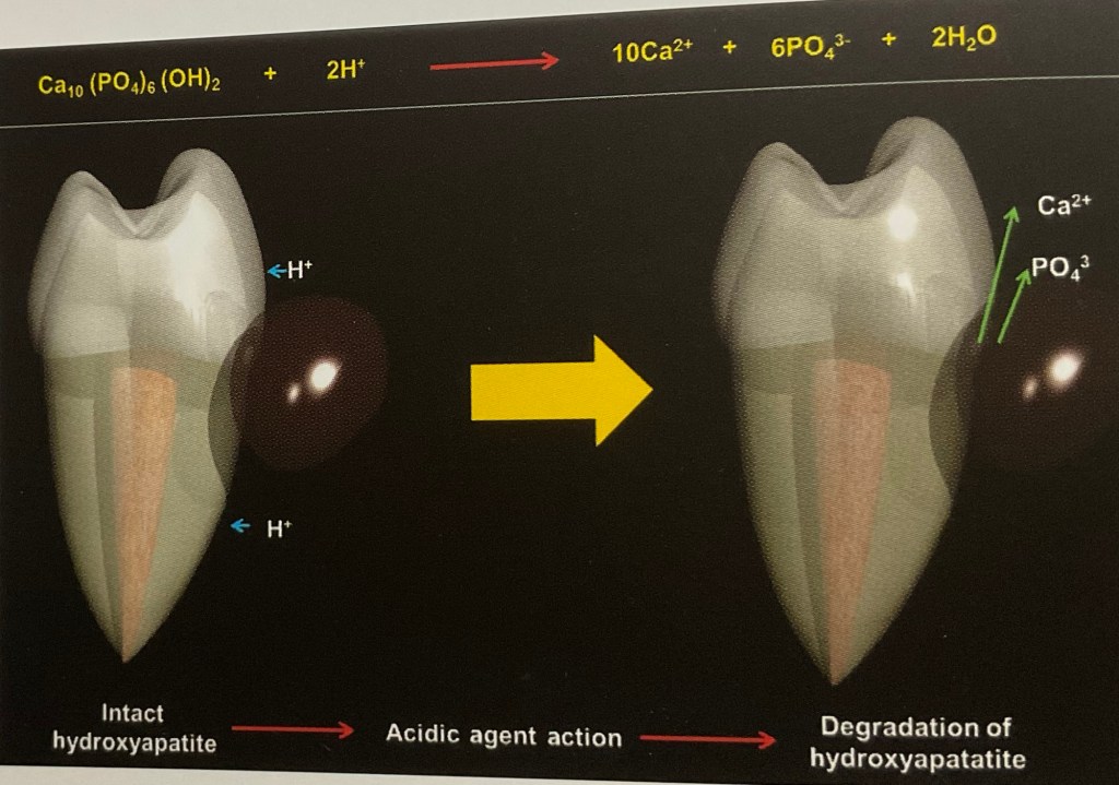 คือ การละลาย แคลเซียม และ ฟอสเฟต ที่ผิวฟัน และ เนื้อฟัน
