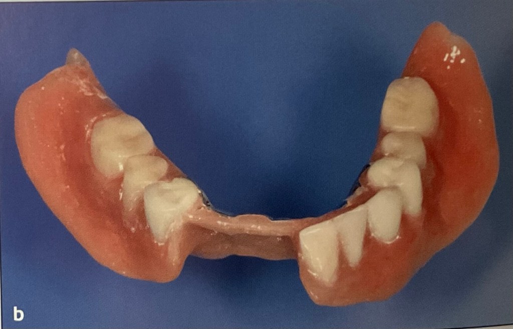 ตัวอย่าง ฟันปลอมชนิดที่มี อะคริลิค อย่างเดียว เป็นฟันปลอมชิ้นล่าง