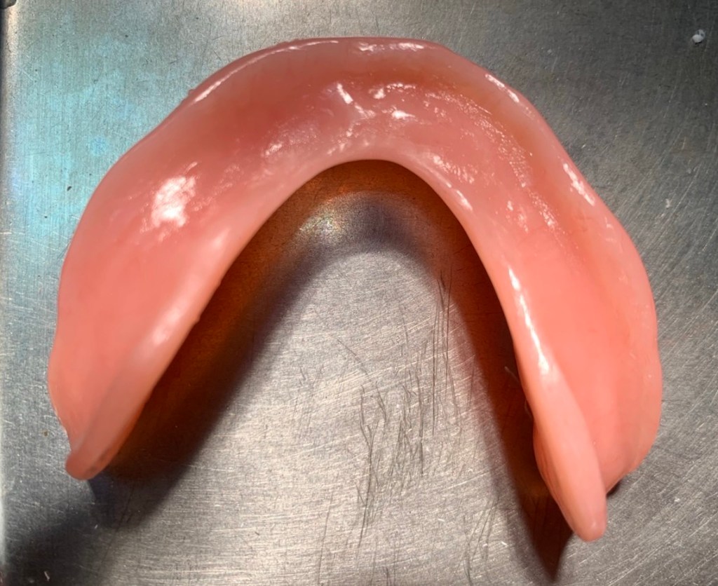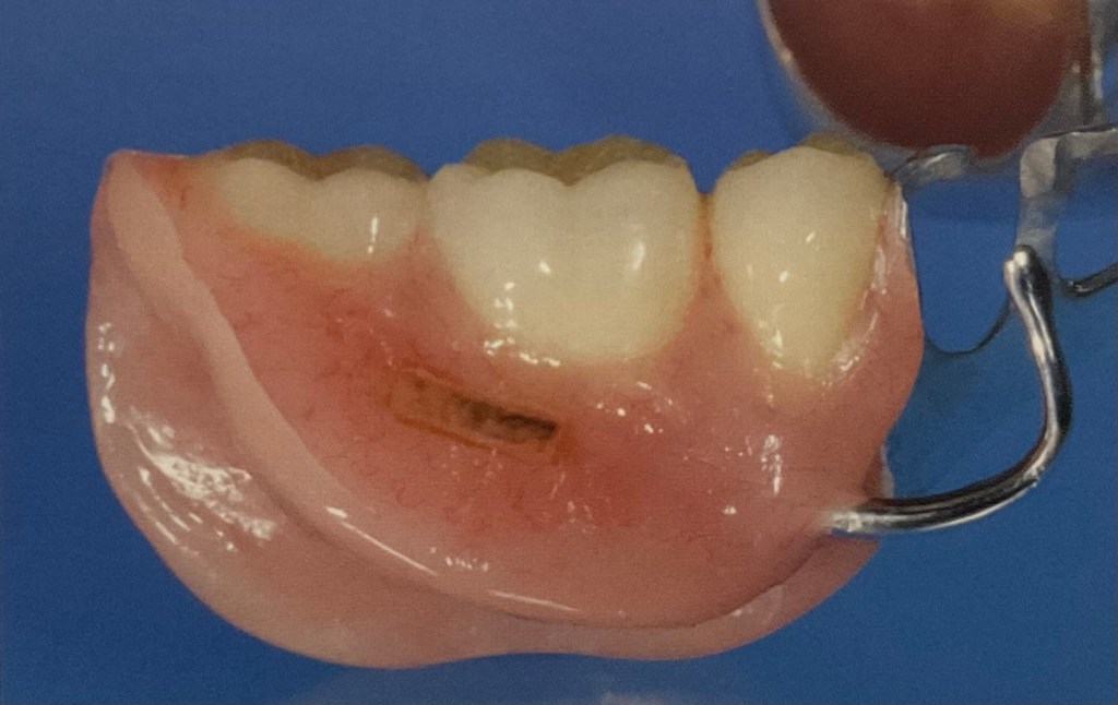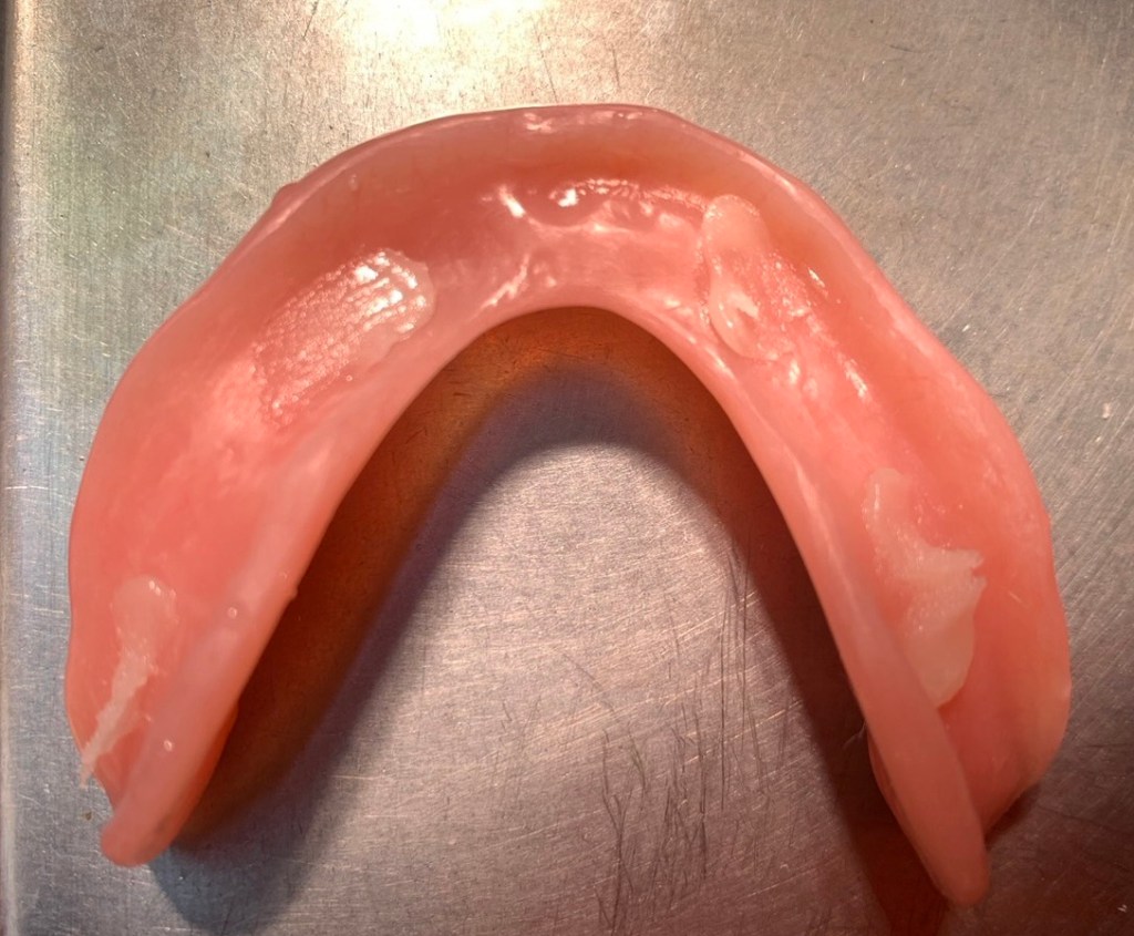 ฟันปลอมชิ้นเดียวกัน เมื่อดูด้านล่าง