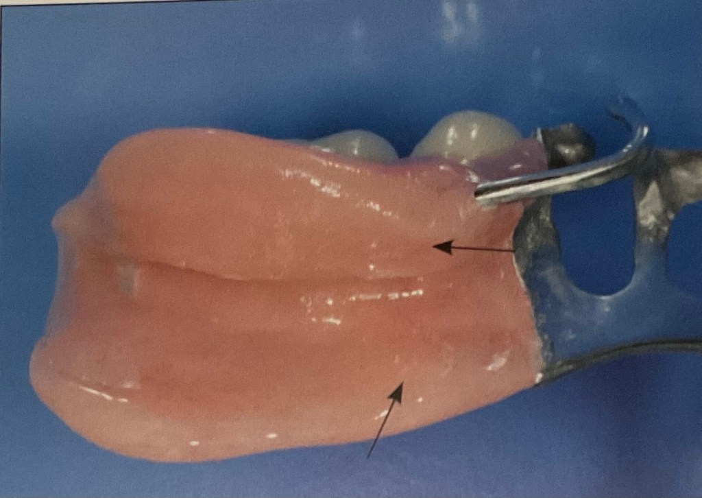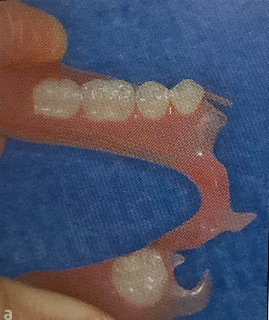 การงอได้ของมัน มีไว้เพื่อให้สามารถโอบรัดที่ฟันจริง เป็นตัวที่ทำให้ฟันปลอมแน่น โดยไม่ต้องใช้ตะขอ ที่เป็นโลหะครับ