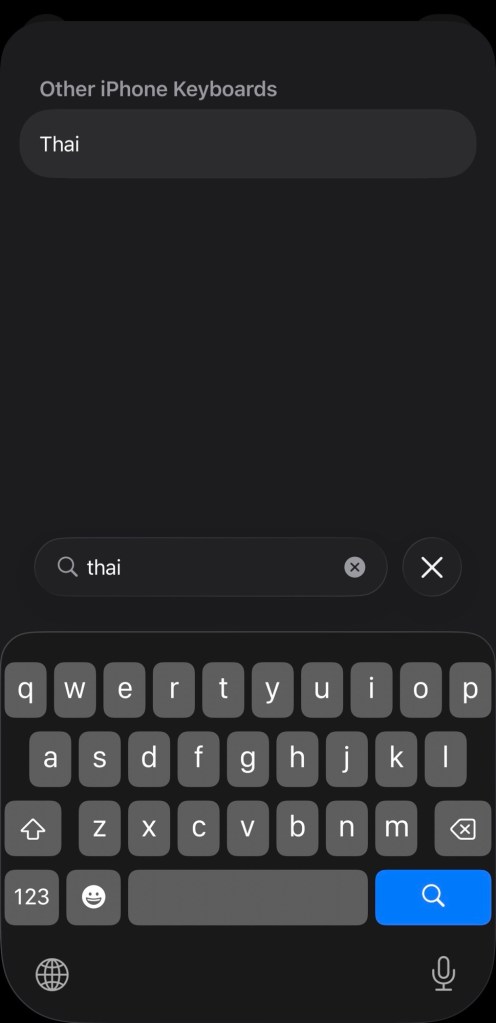 - ต้องลบ Thai keyboard ใน Settings –> General ออกไปก่อน