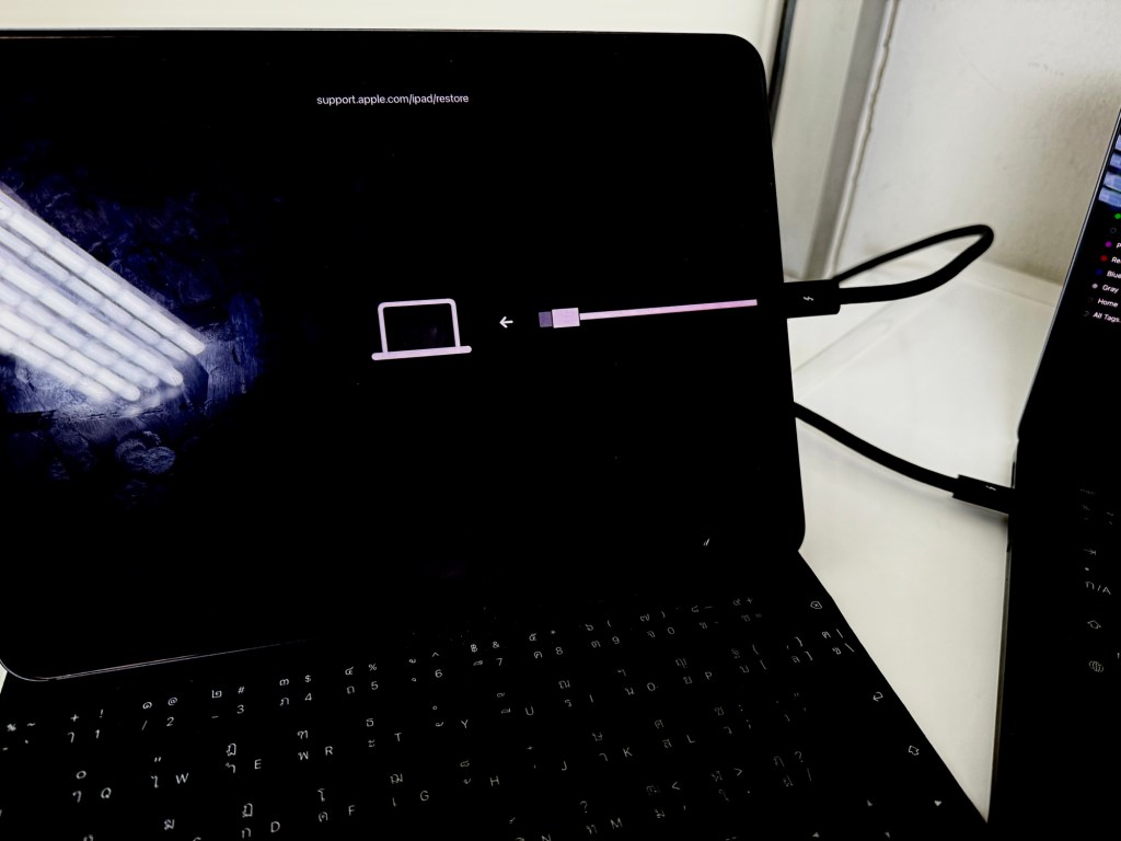 รูปแสดงหน้าจอ iPhone ขณะกำลัง restore
